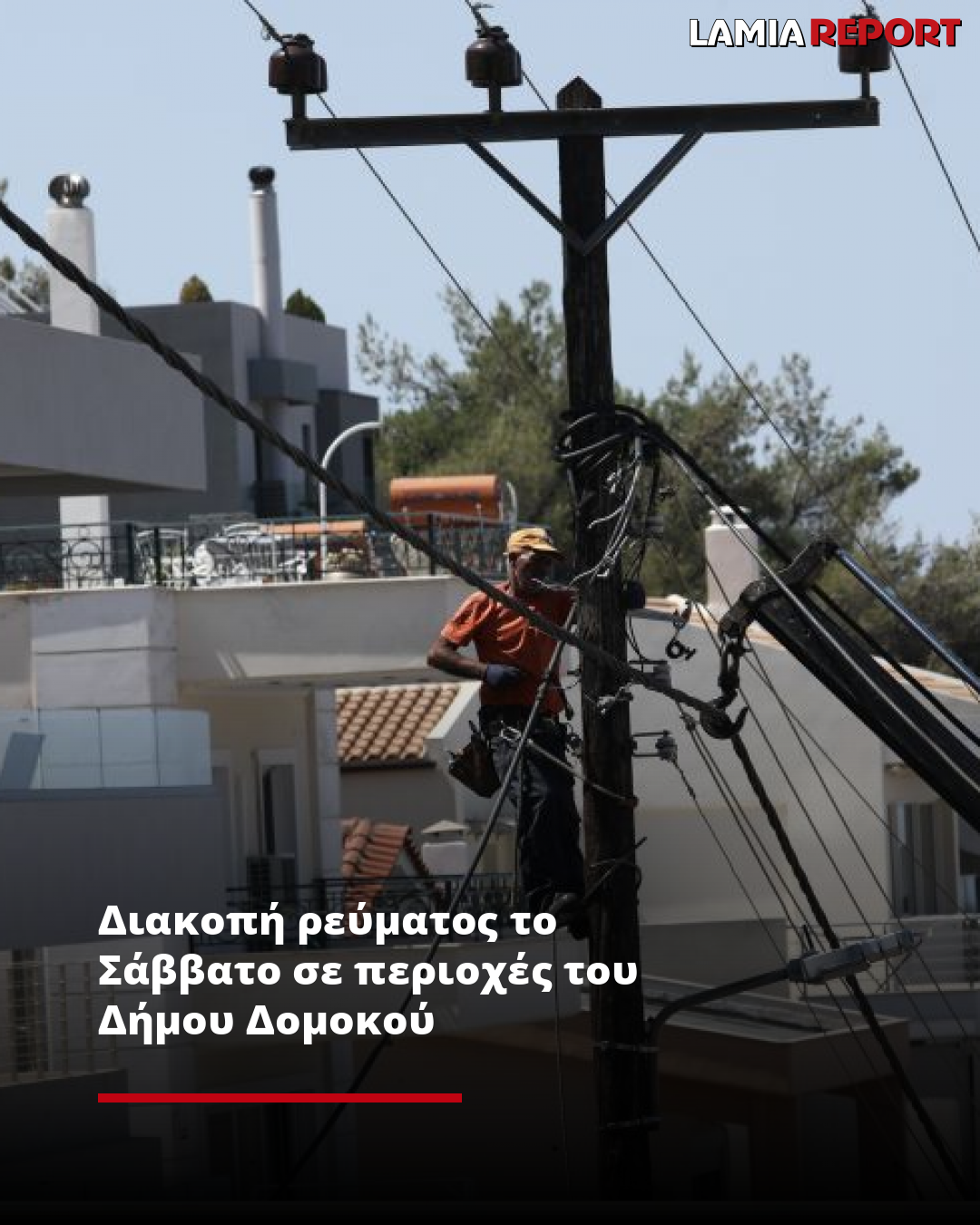Διακοπή ρεύματος το Σάββατο σε περιοχές του Δήμου Δομοκού