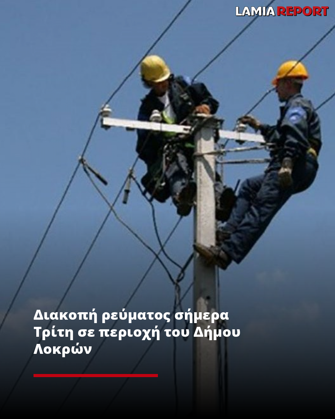Διακοπή ρεύματος σήμερα Τρίτη σε περιοχή του Δήμου Λοκρών