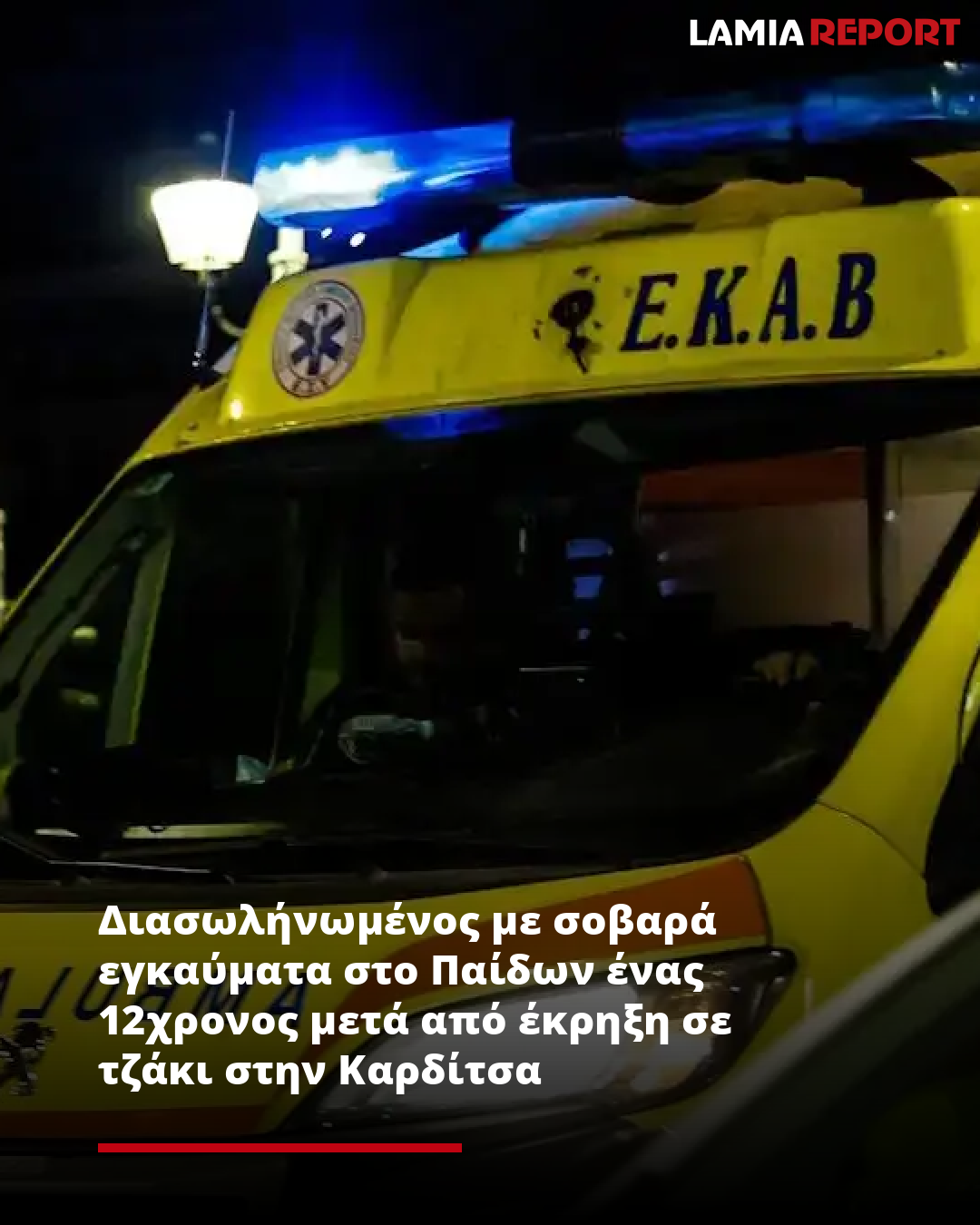 Το αγόρι διακομίστηκε αρχικά στο Γενικό Νοσοκομείο Καρδίτσας, όπου οι γιατροί έκριναν αναγκαία τη διασωλήνωσή του και την άμεση μεταφορά του σε εξειδικευμένη μονάδα στην Αθήνα λόγω της σοβαρότητας της κατάστασής.