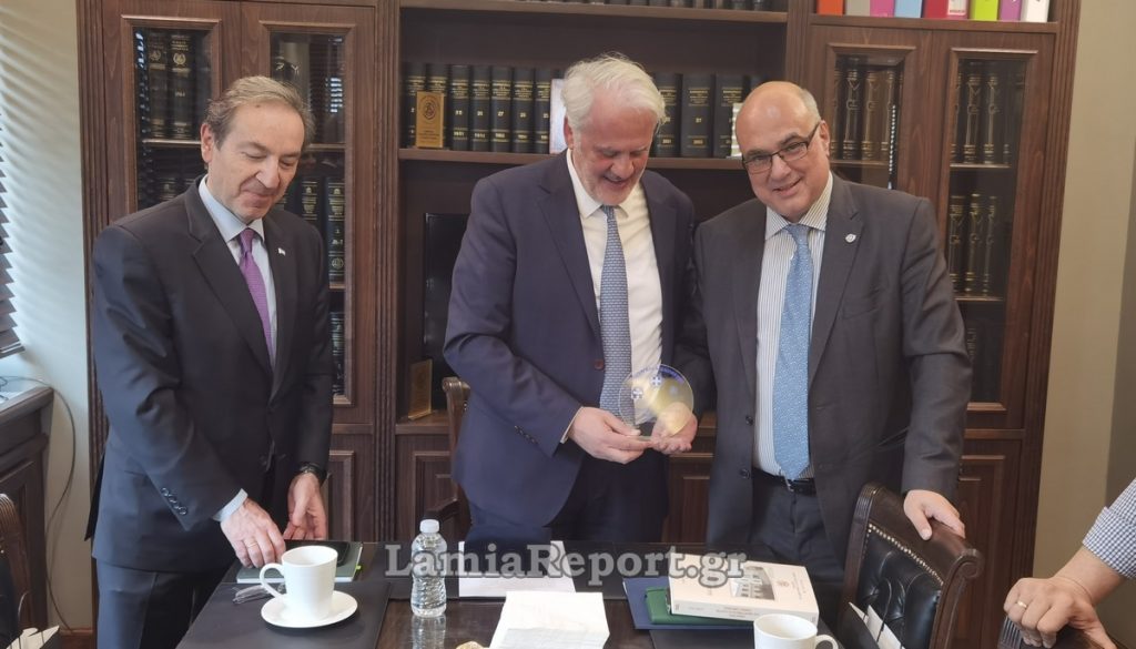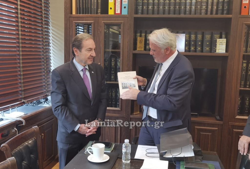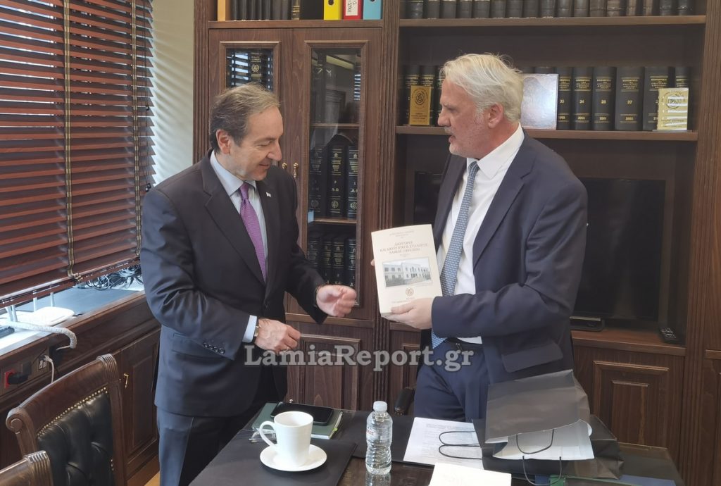 Στο πλαίσιο της επίσκεψης του Υφυπουργού και του ΓΓ του Υπουργείου Δικαιοσύνης, ο κ. Μακρυγιάννης τους πρόσφερε τη Β’ Έκδοση του συλλεκτικού βιβλίου με την ιστορία του Δικηγορικού Συλλόγου Λαμίας, με εικόνες και καταγραφή των ιστορικών δικών που διεξήχθησαν στο ιστορικό Μέγαρο του Εθνικού Ευεργέτη Ανδρέα Συγγρού.