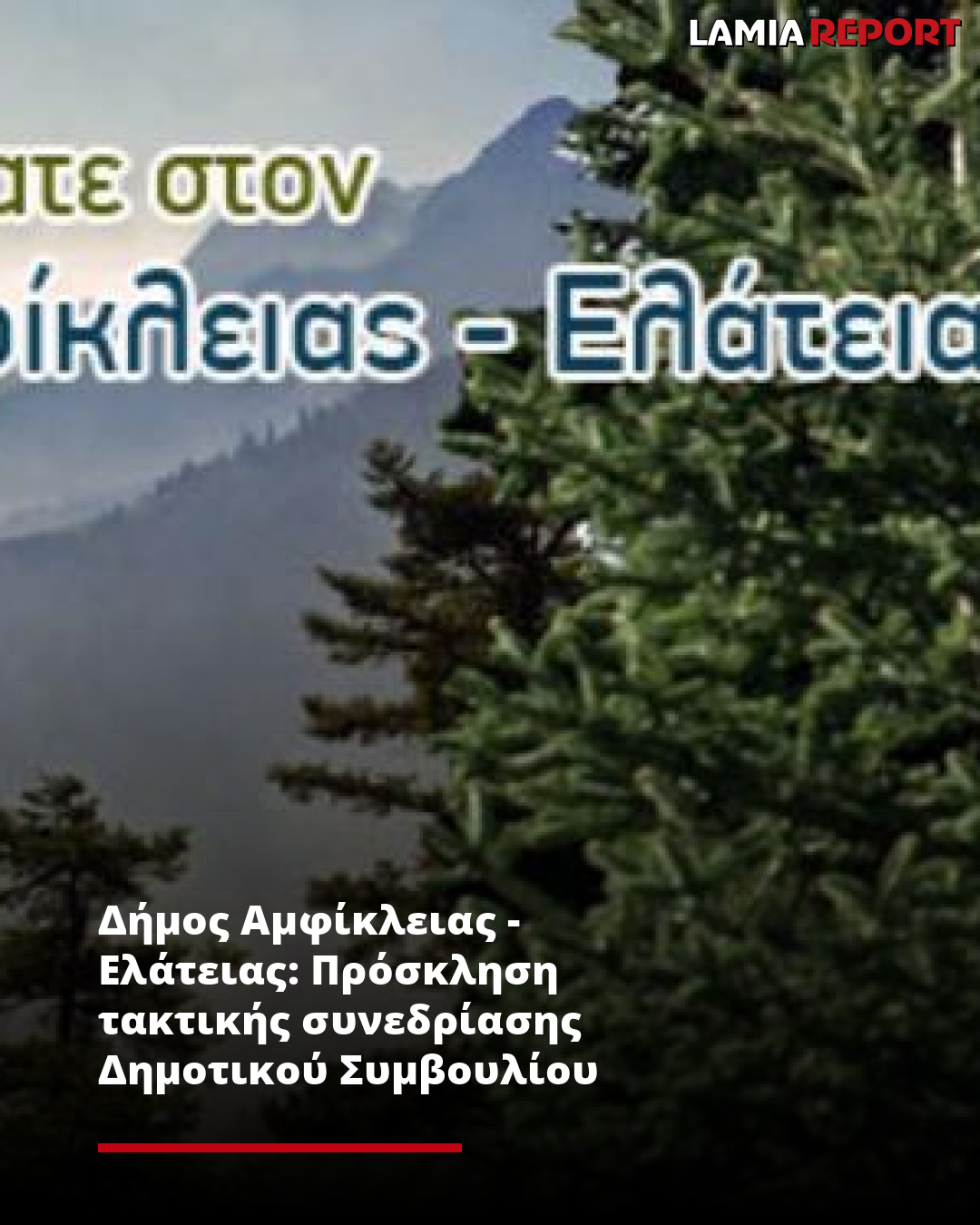 Πρόσκληση σε τακτική συνεδρίαση του Δημοτικού Συμβουλίου Αμφίκλειας – Ελάτειας, απευθύνει ο Πρόεδρος του Κώστας Τσιάμης για σήμερα Τετάρτη 25 Σεπτεμβρίου 2024, στις 18:00’ στο Δημοτικό Κατάστημα Κάτω Τιθορέας.