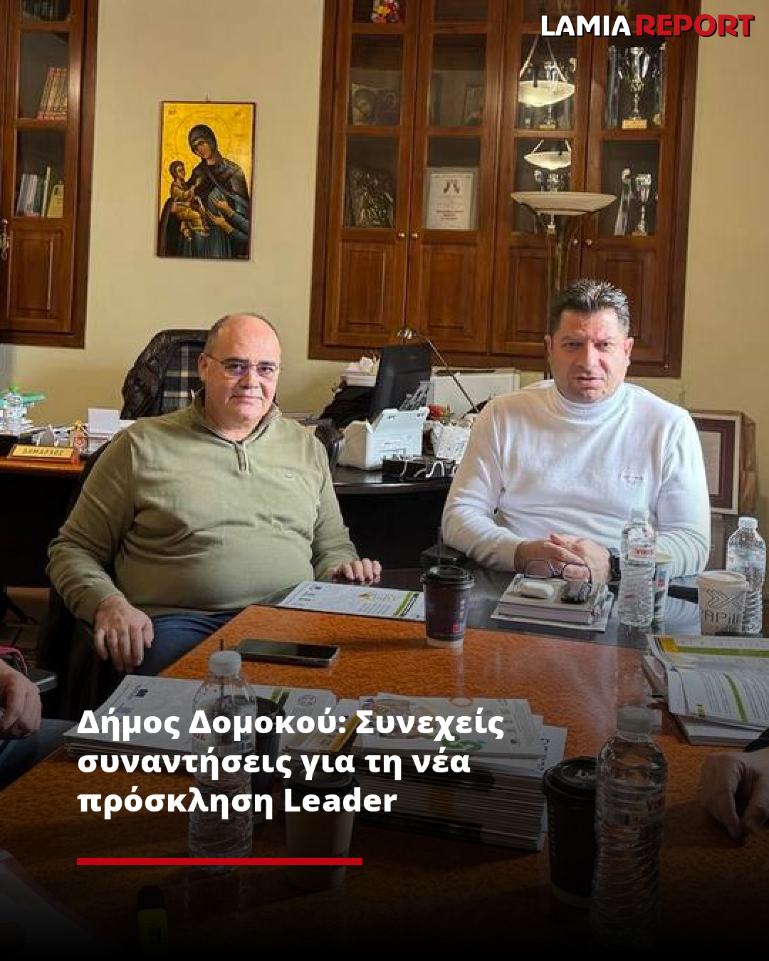Σε κλίμα εποικοδομητικής συνεργασίας πραγματοποιήθηκε την Παρασκευή, 23 Ιανουαρίου 2026, συνάντηση εργασίας στο Διοικητήριο Δομοκού, με αντικείμενο την παρουσίαση και τον συντονισμό δράσεων για το νέο πρόγραμμα LEADER (ΣΣ ΚΑΠ 2023-2027).