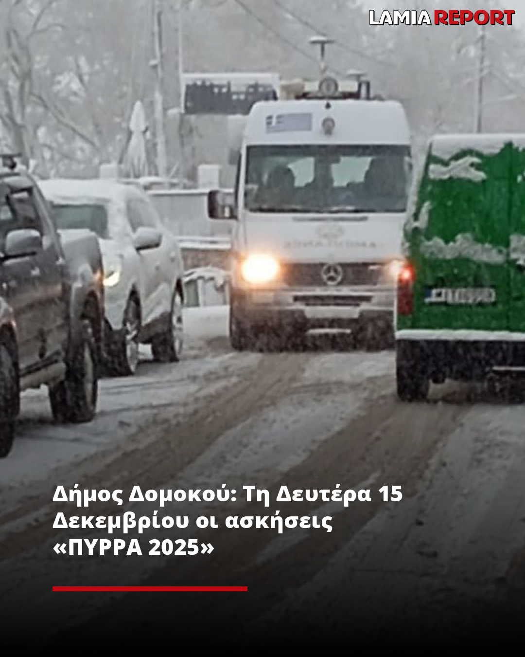 Δήμος Δομοκού: Τη Δευτέρα 15 Δεκεμβρίου οι ασκήσεις «ΠΥΡΡΑ 2025» & «ΧΕΙΜΕΡΙΟΣ 2025»