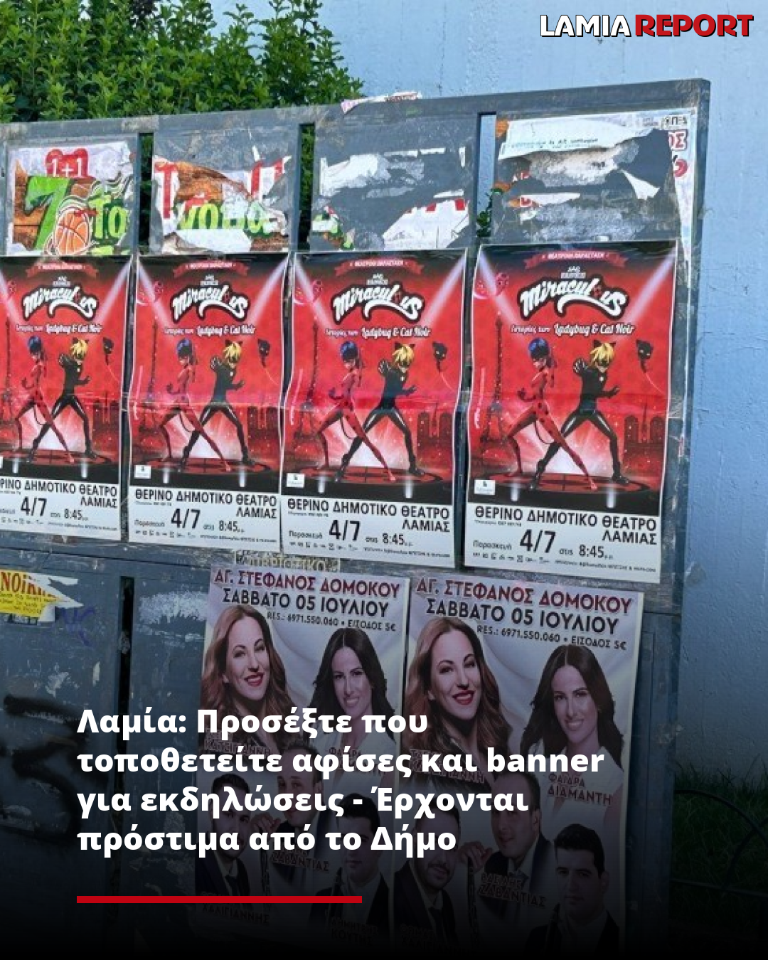 Διαβάστε την ανακοίνωση του Δήμου Λαμιέων για την απαγόρευση αφισοκόλλησης - Ενημέρωση για τον Κανονισμό Καθαριότητας