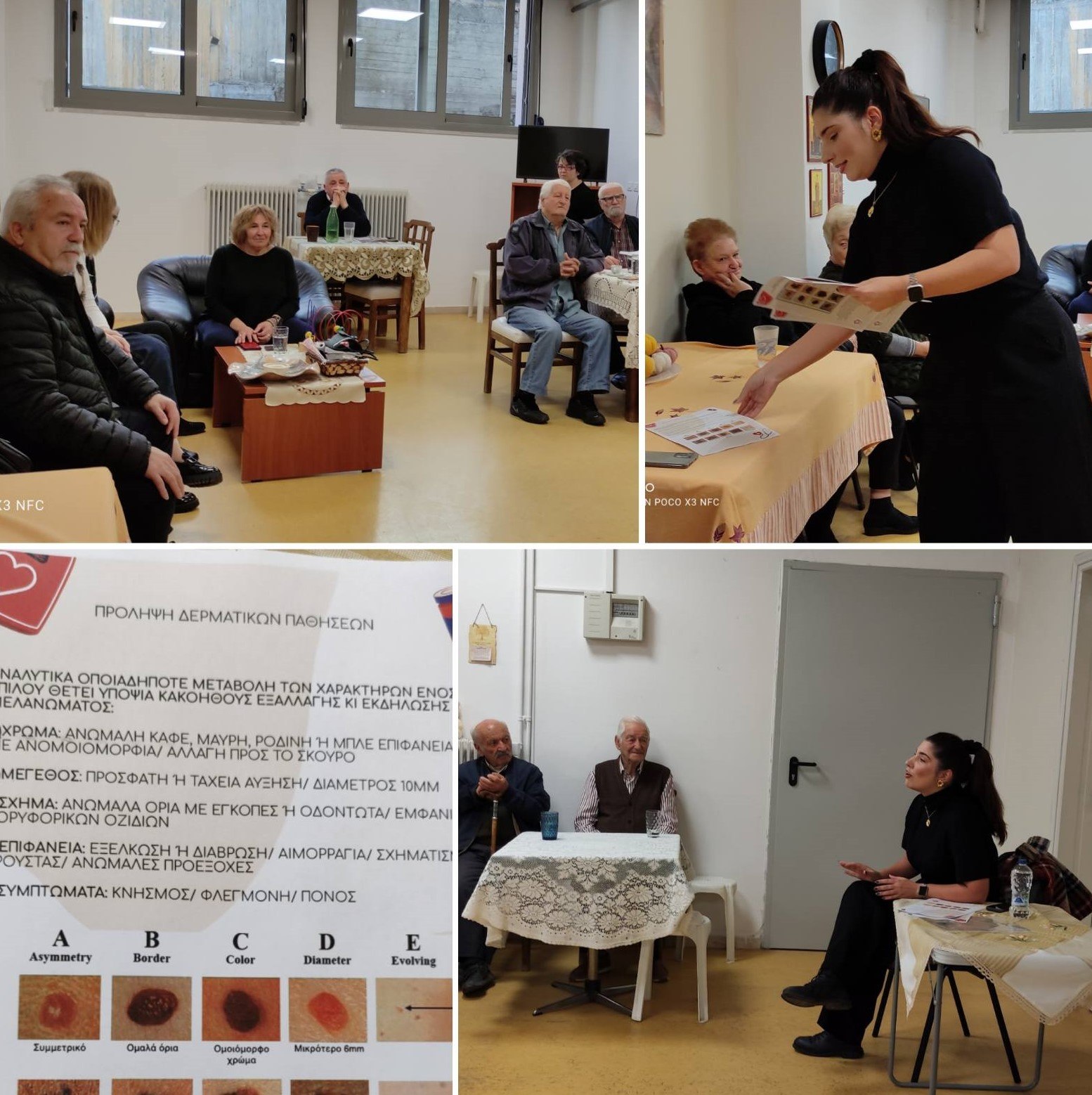 Την Τρίτη 11 Νοεμβρίου 2025 ακολούθησε η δεύτερη ενημερωτική δράση με θέμα «Πρόληψη δερματικών παθήσεων στην Τρίτη Ηλικία», όπου η Νοσηλεύτρια της ΤΟ.Μ.Υ. Έκθεση Λαμίας, Ανθή Σιασιάκου, παρουσίασε πρακτικούς τρόπους φροντίδας και προστασίας του δέρματος των ηλικιωμένων.