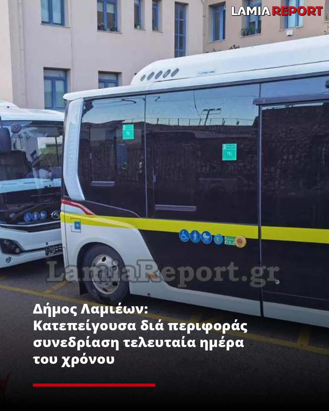 Με μοναδικό θέμα «Θέση σε κυκλοφορία των Λεωφορείων που παρέλαβε ο Δήμος Λαμιέων για τις λειτουργικές ανάγκες του προσωπικού του, συμπεριλαμβανομένου αυτού των βρεφονηπιακών σταθμών», συνεδριάζει εκτάκτως διά περιφοράς, το Δημοτικό Συμβούλιο Λαμιέων την Τετάρτη 31 Δεκεμβρίου 2025 στις 10:00’ το πρωί.