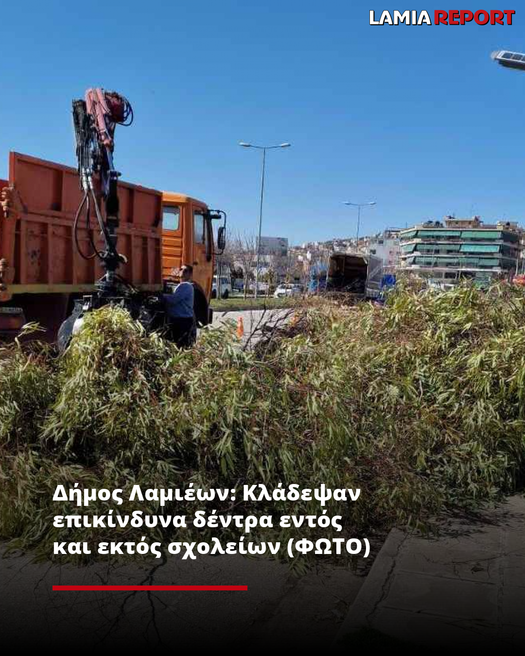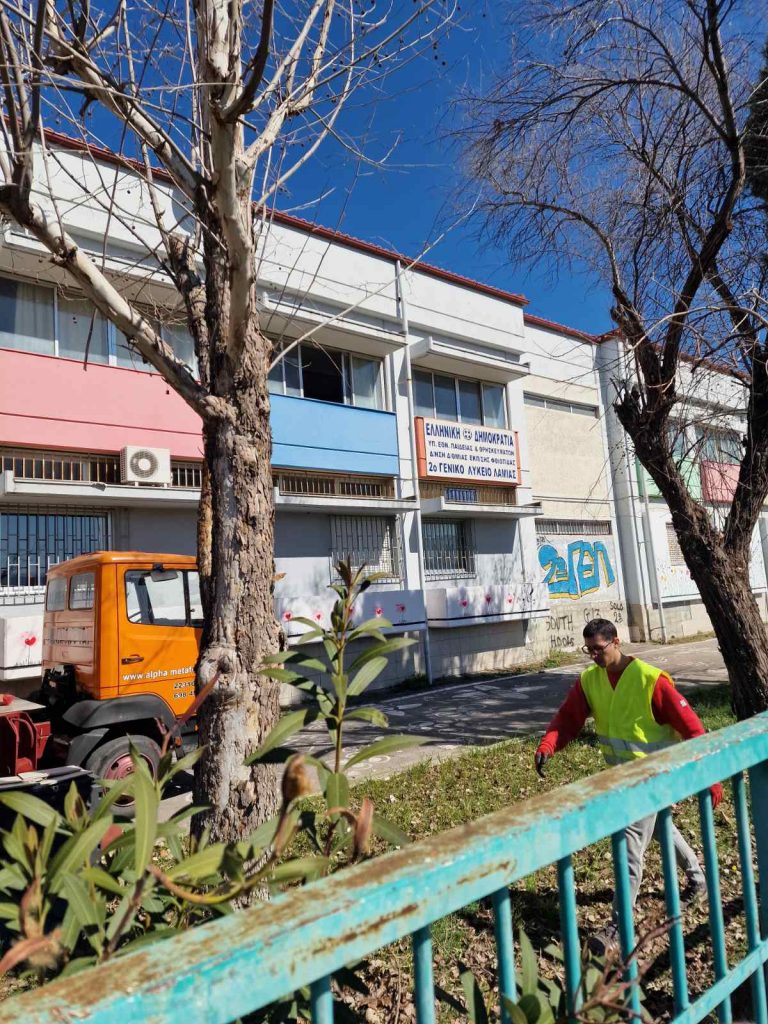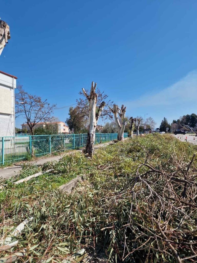 Παρέμβαση σε επικίνδυνα δέντρα πραγματοποίησε ο Δήμος Λαμιέων, εντός και εκτός από το 2ο Λύκειο Λαμίας στην περιοχή της Έκθεσης.