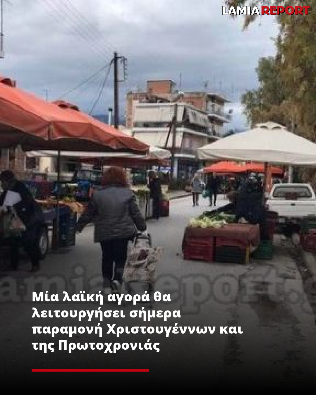 Η Διεύθυνση Τοπικής και Αγροτικής Ανάπτυξης του Δήμου Λαμιέων ενημερώνει τους δημότες ότι, για την καλύτερη εξυπηρέτηση του καταναλωτικού κοινού, την παραμονή των Χριστουγέννων και της Πρωτοχρονιάς θα λειτουργήσει ΜΟΝΟ η λαϊκή αγορά που πραγματοποιείται στο κέντρο της πόλης, επί των οδών Αγίου Νικολάου και Λεωσθένους, και όχι η περιφερειακή αγορά επί της οδού Σμύρνης, που πραγματοποιείται κάθε Τρίτη.