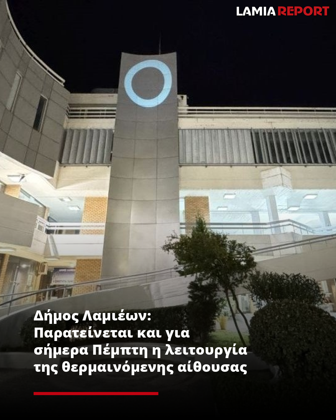Ο Δήμος Λαμιέων ενημερώνει ότι, λόγω των δυσμενών καιρικών συνθηκών και των χαμηλών θερμοκρασιών που επικρατούν στην περιοχή μας, παρατείνεται η λειτουργία της θερμαινόμενης αίθουσας και για την Πέμπτη 22 Ιανουαρίου 2026, στο Πολιτιστικό Κέντρο επί της οδού Λεωνίδου 9-11 (Αίθουσα Β, 2ος όροφος).