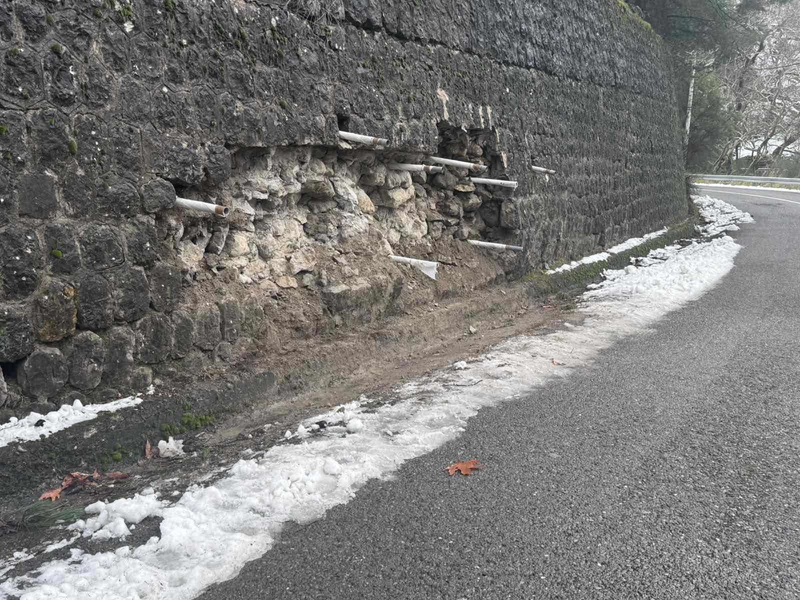 Εργασίες προσωρινής αποκατάστασης τοιχίου αντιστήριξης που βρίσκεται επί της επαρχιακής οδού Λουτρών Υπάτης - Υπάτης, σε σημείο όπου έχει διαπιστωθεί αυξημένη επικινδυνότητα, πραγματοποιεί ο Δήμος Λαμιέων.