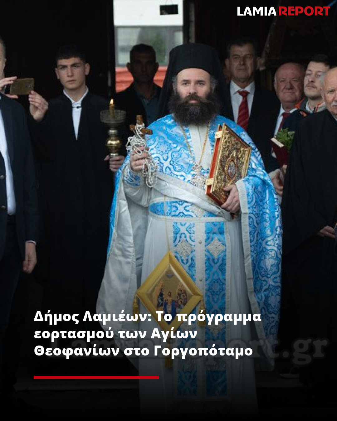 Ο Δήμαρχος Λαμιέων Πανουργιάς Παπαϊωάννου, το Δημοτικό Συμβούλιο & η Δημοτική Κοινότητα Γοργοποτάμου μας προσκαλούν στον εορτασμό των Αγίων Θεοφανίων και στην τελετή Καθαγιασμού των Υδάτων, που θα πραγματοποιηθούν τη Δευτέρα 6 Ιανουαρίου 2025 στον Γοργοπόταμο.