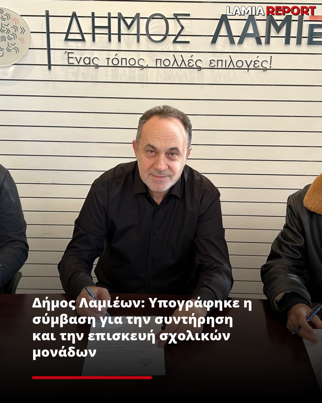 «Προσηλωμένοι στο στόχο που είχαμε εξαρχής θέσει για την βελτίωση των σχολικών υποδομών του Δήμου Λαμιέων, υπογράψαμε σήμερα τη σύμβαση του έργου για την συντήρηση και επισκευή σχολικών μονάδων μας.