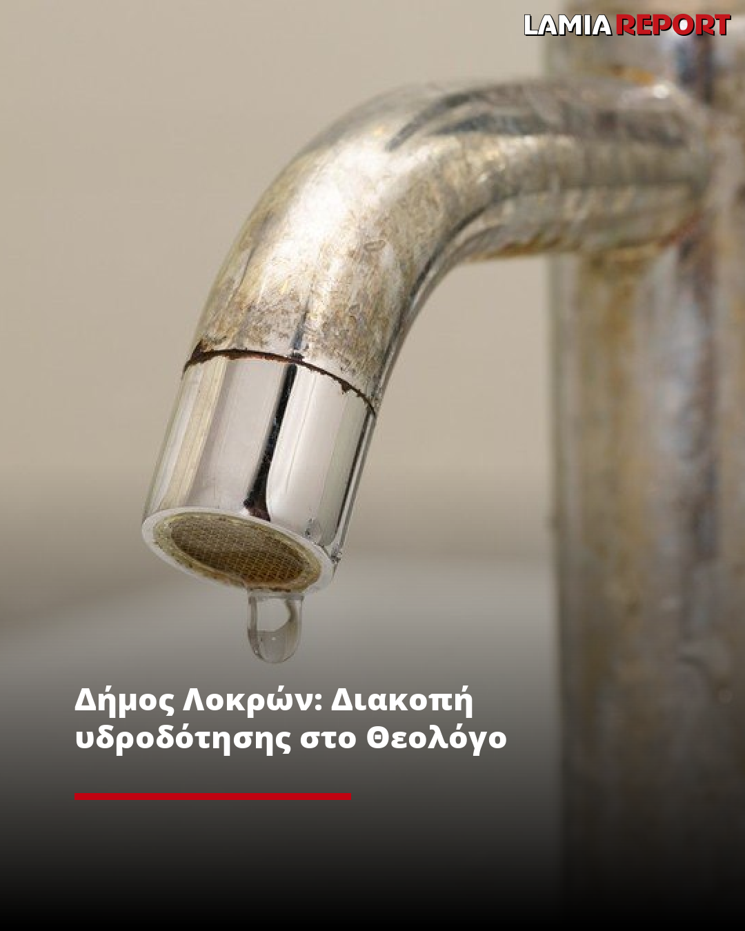 Ο Δήμος Λοκρών ανακοίνωσε ότι θα πραγματοποιηθεί διακοπή υδροδότησης λόγω βλάβης του κεντρικού αγωγού στον Θεολόγο , σήμερα Τετάρτη 07/01/2026 από 09:30 π.μ. και κατ’ εκτίμηση έως 11:30 π.μ.