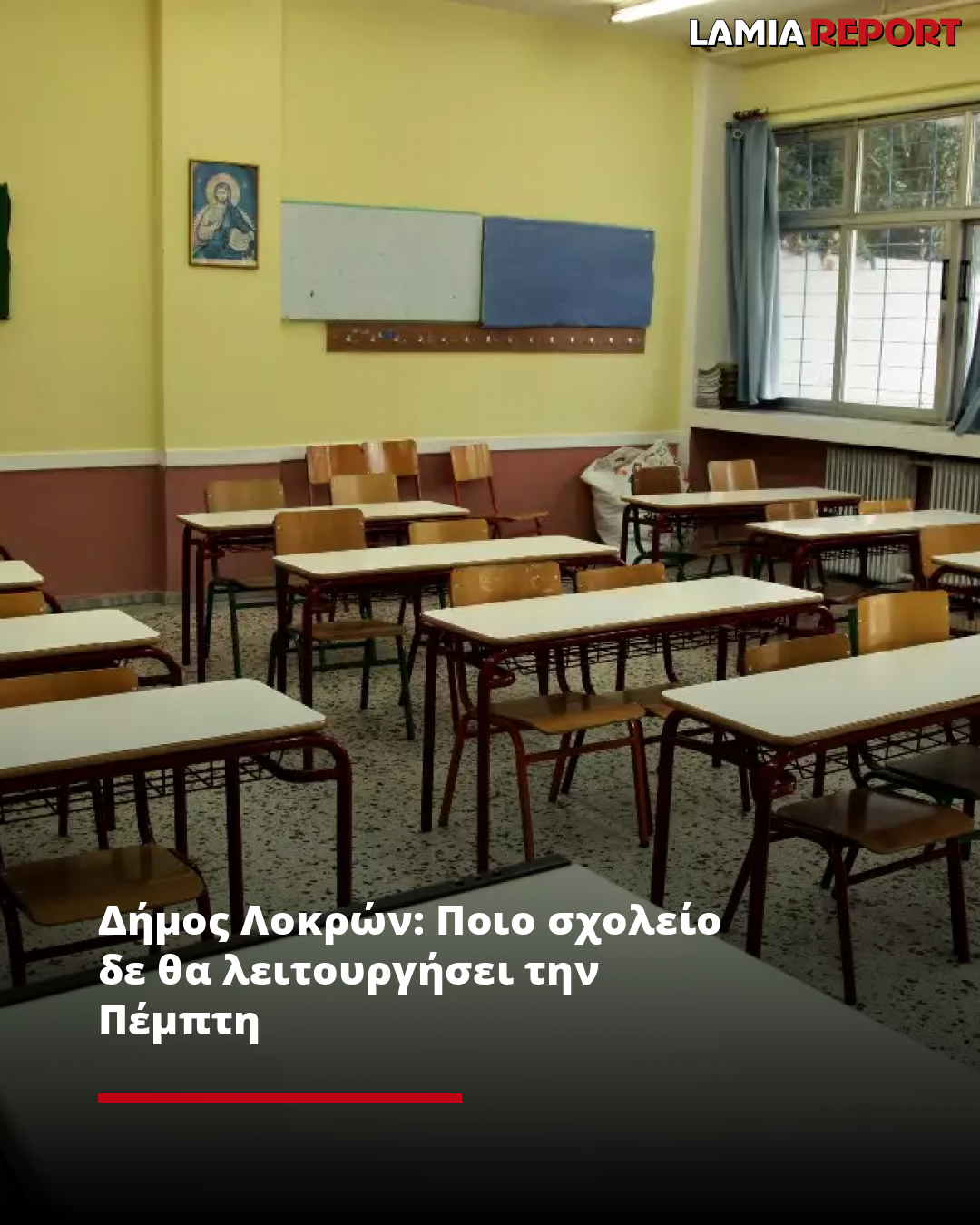 Κλειστό θα παραμείνει το Δημοτικό Σχολείο Λιβανατών την Πέμπτη 16 Ιανουαρίου 2025, σύμφωνα με σχετική απόφαση του Δημάρχου Λοκρών Αθανάσιου Ζεκεντέ.
