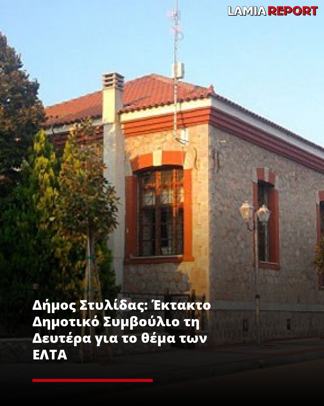 Ο Δήμος Στυλίδας ανακοινώνει ότι τη Δευτέρα 3 Νοεμβρίου 2025, στις 7:30 το απόγευμα, θα πραγματοποιηθεί έκτακτη συνεδρίαση του Δημοτικού Συμβουλίου με μοναδικό θέμα: Ψήφισμα διαμαρτυρίας για την επικείμενη κατάργηση του Υποκαταστήματος ΕΛΤΑ Στυλίδας.