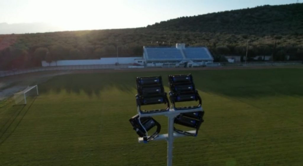 Και σήμερα ολοκληρώθηκε η τοποθέτηση σύγχρονου φωτισμού, εξασφαλίζοντας άπλετο φως για νυχτερινές προπονήσεις και αγώνες, ώστε οι αθλητές μας αλλά και κάθε πολίτης του δήμου μας θα μπορεί να αθλείται με ασφάλεια ακόμη και τις νυχτερινές ώρες.