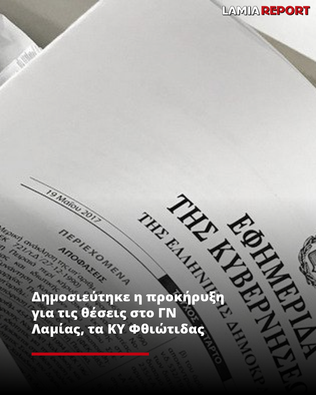 Δημοσιεύτηκε η προκήρυξη για τις θέσεις στο ΓΝ Λαμίας, τα ΚΥ Φθιώτιδας & το ΕΚΑΒ Λαμίας