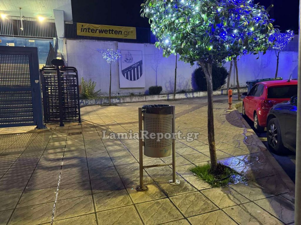 Το στόλισμα με τα δεντράκια και το πράσινο έξω από το Δημοτικό Αθλητικό Κέντρο Λαμίας «Αθανάσιος Διάκος», είναι εξαιρετικό και συνθέτουν μια όμορφη εικόνα. Αυτό φαίνεται σε κάποιους δεν αρέσει. Έτσι είπαν να σπάσουν κάποια μπεκ και να γεμίσει ο τόπος νερά, ενώ φρόντισαν όσα έμειναν να ποτίζουν παντού γύρω, εκτός από το πράσινο και τα δέντρα.