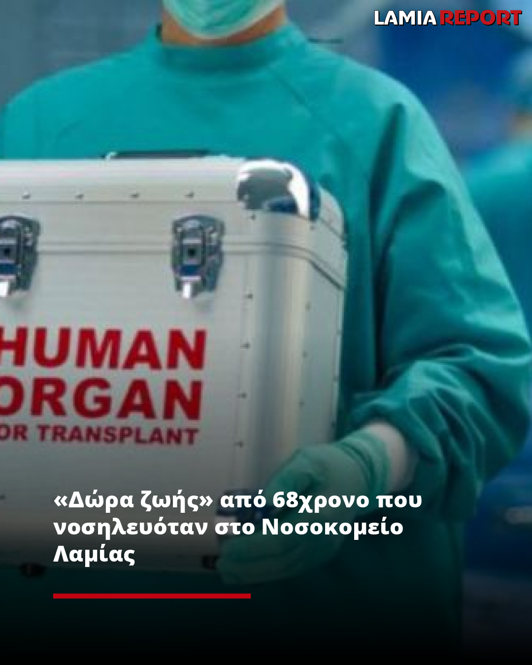 Σήμερα 29 Ιανουαρίου 2025, στο Γενικό Νοσοκομείο Λαμίας πραγματοποιήθηκε με επιτυχία, μια ακόμη δωρεά οργάνων προς μεταμόσχευση, από 68χρόνο δότη που νοσηλευόταν στη ΜΕΘ από τις 25/01/2025.