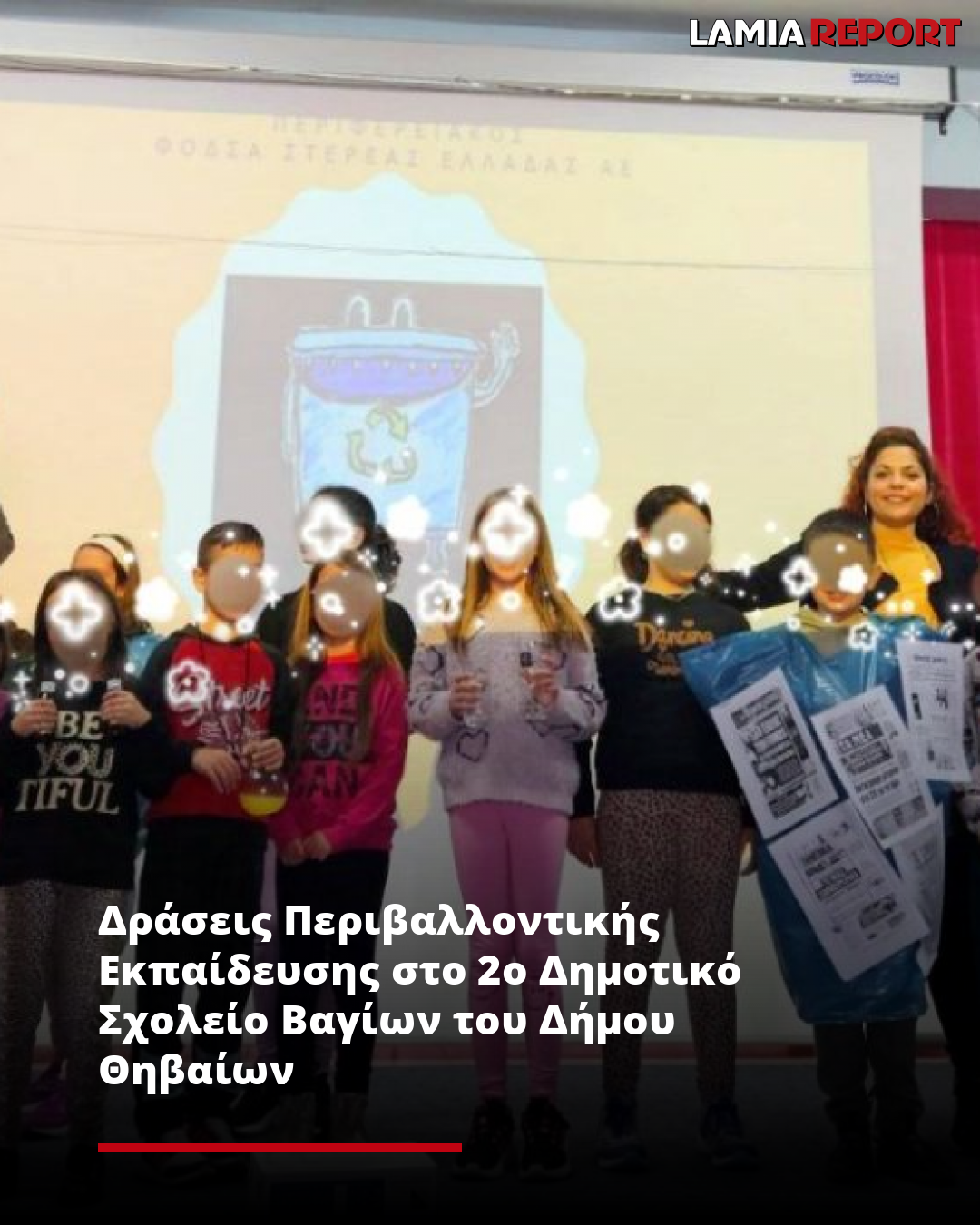 «Την Τρίτη 5 Νοεμβρίου 2024, οι μαθητές όλων των τάξεων του 2ου Δημοτικού Σχολείου Βαγίων του Δήμου Θηβαίων, συμμετείχαν στις περιβαλλοντικές δράσεις (προβολή βίντεο & παρουσίασης, παιχνίδι κρυμμένου θησαυρού, μπάσκετ με ανακυκλώσιμα υλικά, κ.ά.) που πραγματοποιήθηκαν στο σχολείο τους από εκπροσώπους του Περιφερειακού Φο.Δ.Σ.Α Στερεάς Ελλάδας AE με στόχο την ενημέρωση-ευαισθητοποίηση των μαθητών και την προώθηση της περιβαλλοντικής εκπαίδευσης.