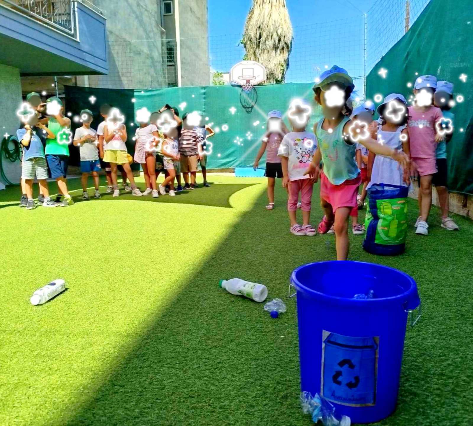 Επιπλέον, οι μικροί μας φίλοι έπαιξαν μπάσκετ με ανακυκλώσιμα υλικά κατανοώντας στην πράξη τη συμβολή της επαναχρησιμοποίησης στην προσπάθεια για την προστασία του περιβάλλοντος αλλά και στην ανάπτυξη δεξιοτήτων, όπως είναι η φαντασία, η δημιουργικότητα κ.ά..