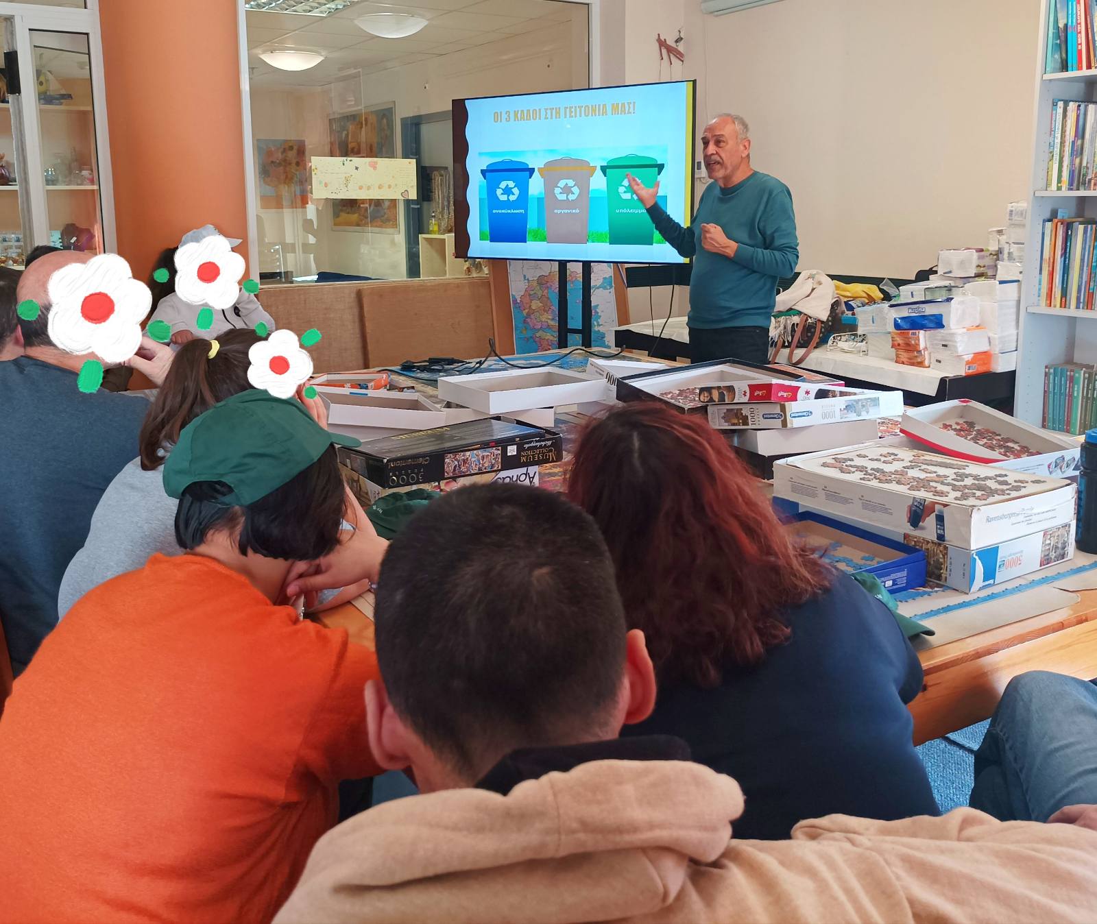 Κατά τη διάρκεια της δράσης, οι συμμετέχοντες παρακολούθησαν μια ενδιαφέρουσα και κατανοητή παρουσίαση, συνοδευόμενη από ενημερωτικά βίντεο, σχετικά με την προστασία του περιβάλλοντος μέσα από την ορθή διαχείριση αποβλήτων, την ανακύκλωση, την κομποστοποίηση, την επαναχρησιμοποίηση και τη διαλογή στην πηγή. Παράλληλα, γνώρισαν έννοιες όπως οι Χώροι Ανεξέλεγκτης Διάθεσης Απορριμμάτων (ΧΑΔΑ), οι Χώροι Υγειονομικής Ταφής Απορριμμάτων (ΧΥΤΑ) και οι Μονάδες Επεξεργασίας Αποβλήτων (ΜΕΑ), μέσα από απλές και κατανοητές εξηγήσεις.