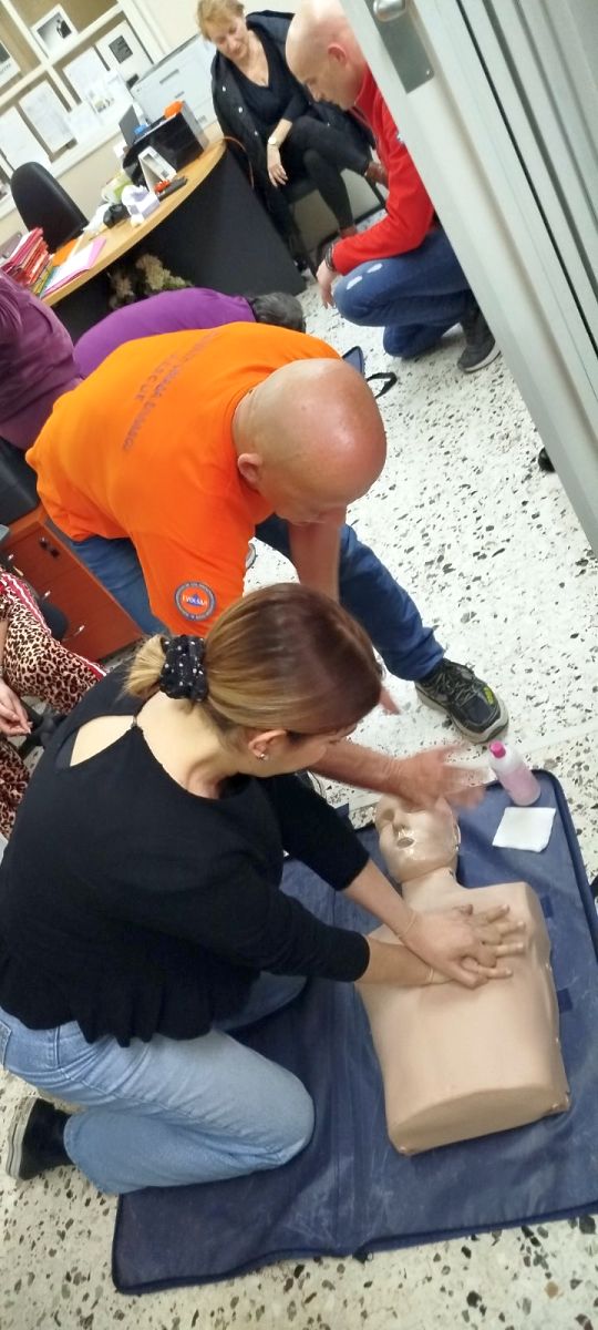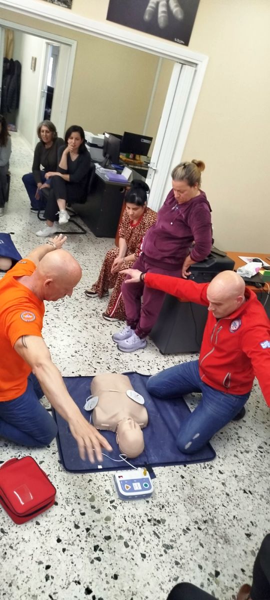 Συγκεκριμένα οι εργαζόμενοι εκπαιδεύτηκαν στις πρώτες βοήθειες (κάρπα, πνιγμονή) και στην χρήση απινιδωτή, ο οποίος είναι δωρεά στην Διεύθυνση Κοινωνικής Προστασίας και Αλληλεγγύης από τον κ. Γεώργιο Παπαγεωργίου.