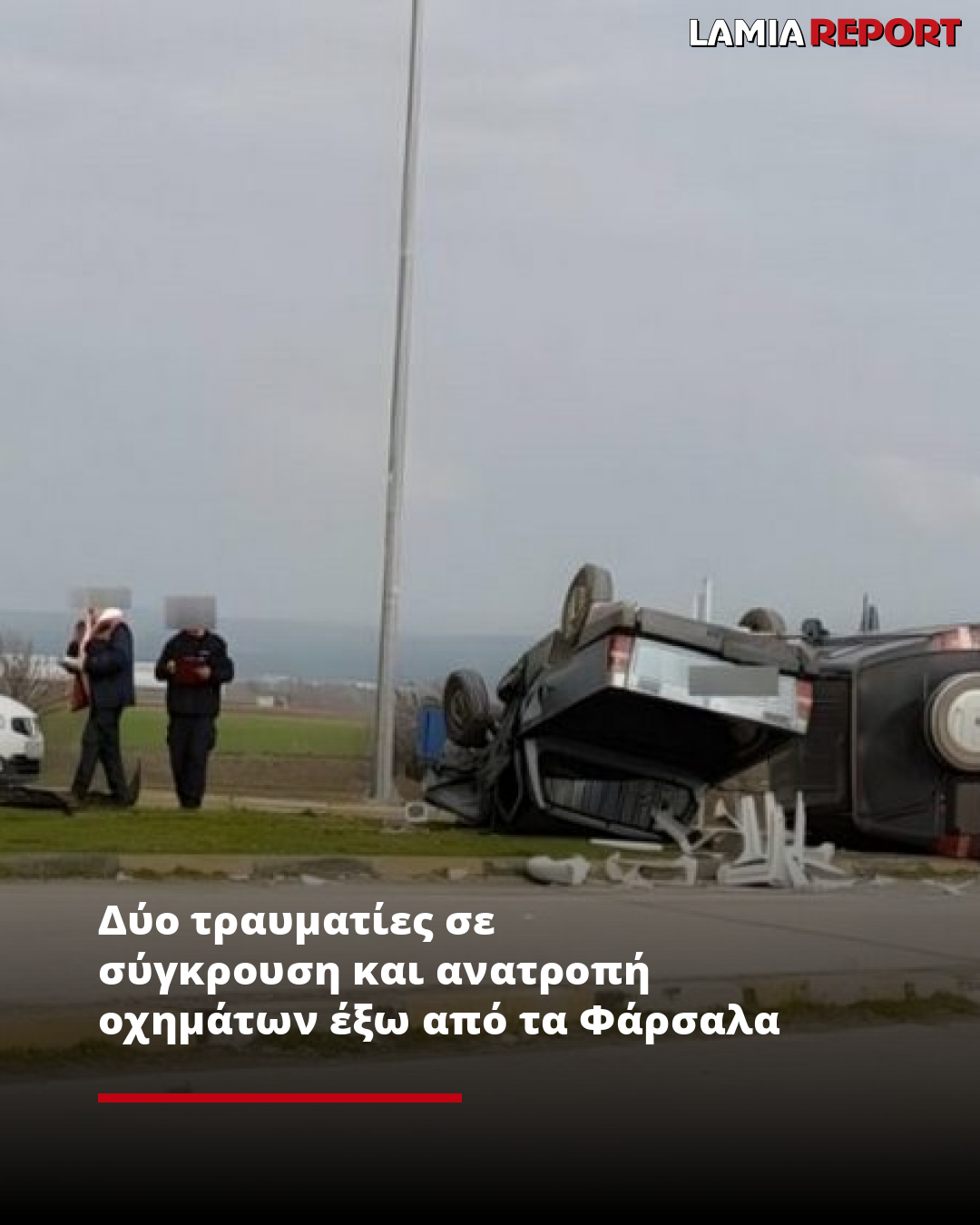 Δύο τραυματίες σε σύγκρουση και ανατροπή οχημάτων έξω από τα Φάρσαλα