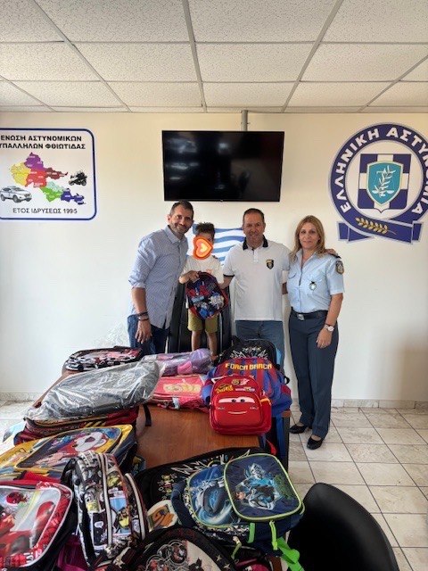 Τη Δευτέρα 08 Σεπτεμβρίου η Ένωση Αστυνομικών Υπαλλήλων Φθιώτιδας, πραγματοποίησε την καθιερωμένη εκδήλωση ενίσχυσης των οικογενειών των μελών της, με την προμήθεια σχολικών τσαντών για τα παιδιά των μελών που θα φοιτήσουν στα προ νήπια και στην Α Δημοτικού κατά το σχολικό έτος 2025-2026.