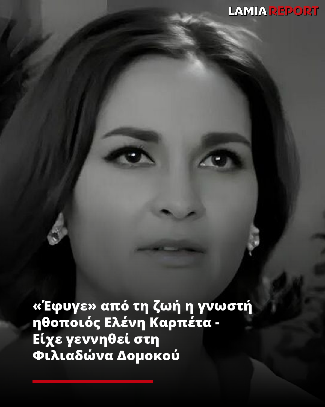 Έφυγε σε ηλικία 88 ετών η γνωστή ηθοποιός και σκηνοθέτης Ελένη Καρπέτα η οποία ήταν γεννημένη στη Φιλιαδώνα (Χιλιαδού) Δομοκού.