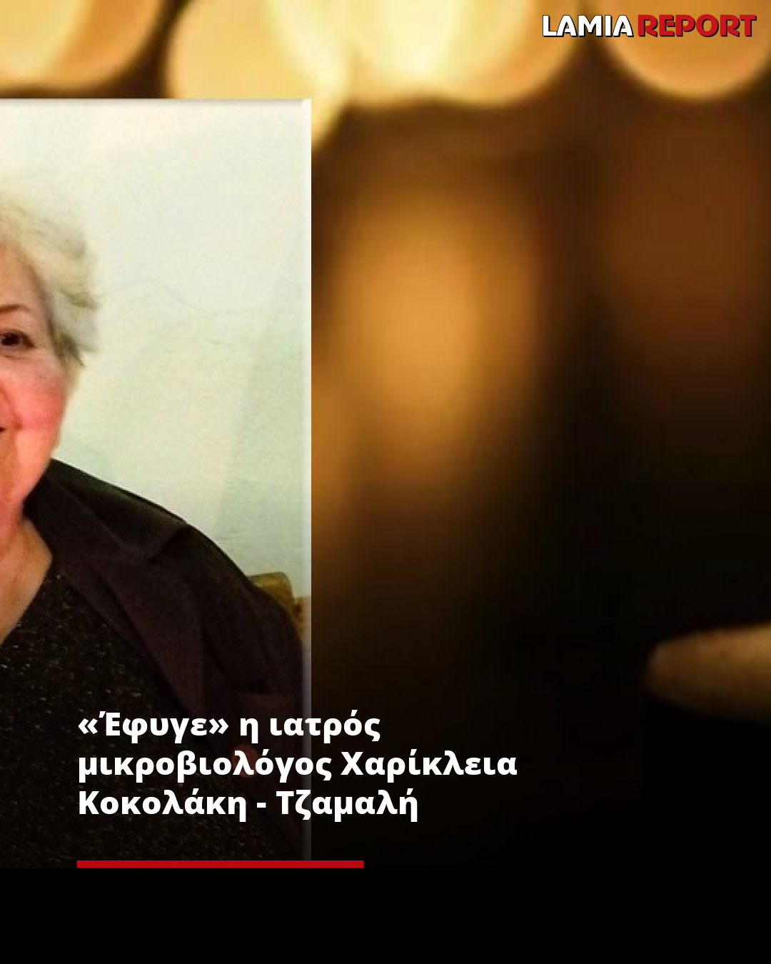 Η τοπική κοινωνία της Λαμίας και της Φθιώτιδας είναι συγκλονισμένη από τον αδόκητο χαμό της ιατρού μικροβιολόγου Χαρίκλειας Κοκολάκη - Τζαμαλή, ενός υπέροχου ανθρώπου και εξαίρετης επιστήμονα.
