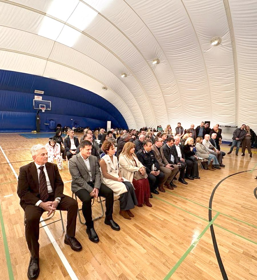 “Σήμερα είναι μια ιδιαίτερα σημαντική ημέρα για τον Δήμο μας. Με μεγάλη χαρά εγκαινιάζουμε το νέο κλειστό γυμναστήριο με αεροϋποστηριζόμενο θόλο, μια σύγχρονη αθλητική εγκατάσταση που δημιουργήθηκε με όραμα, επιμονή και συνεργασία”, σημείωσε μεταξύ άλλων ο κ. Καραμάνης.