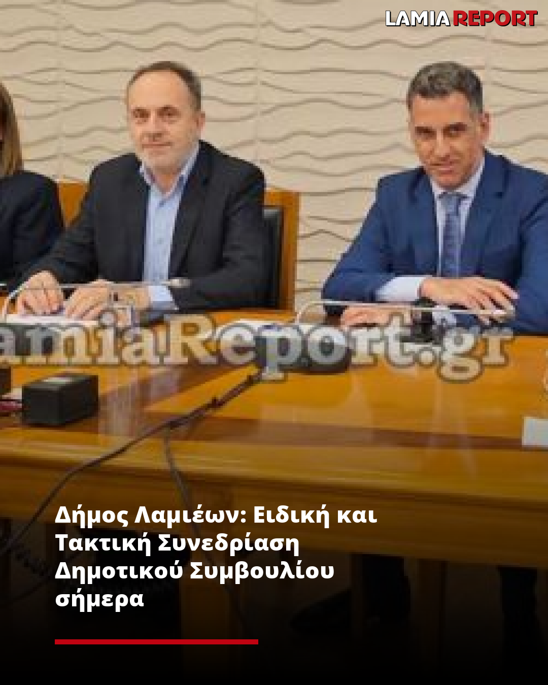 Στην αίθουσα συνεδριάσεων του Δημοτικού Καταστήματος «ΛΑΜΠΡΟΣ ΠΑΠΑΔΗΜΑΣ», στην οδό Αινιάνων 6, στις 19:00’ θα πραγματοποιηθεί Ειδική Συνεδρίαση με μοναδικό θέμα «Έγκριση Έκθεσης πεπραγμένων Δημοτικής Επιτροπής Δήμου Λαμιέων, Α’ εξάμηνο 2024 (Εισηγητής Πρόεδρος Δ.Σ. κ. Σεραφείμ Πρέντζας).