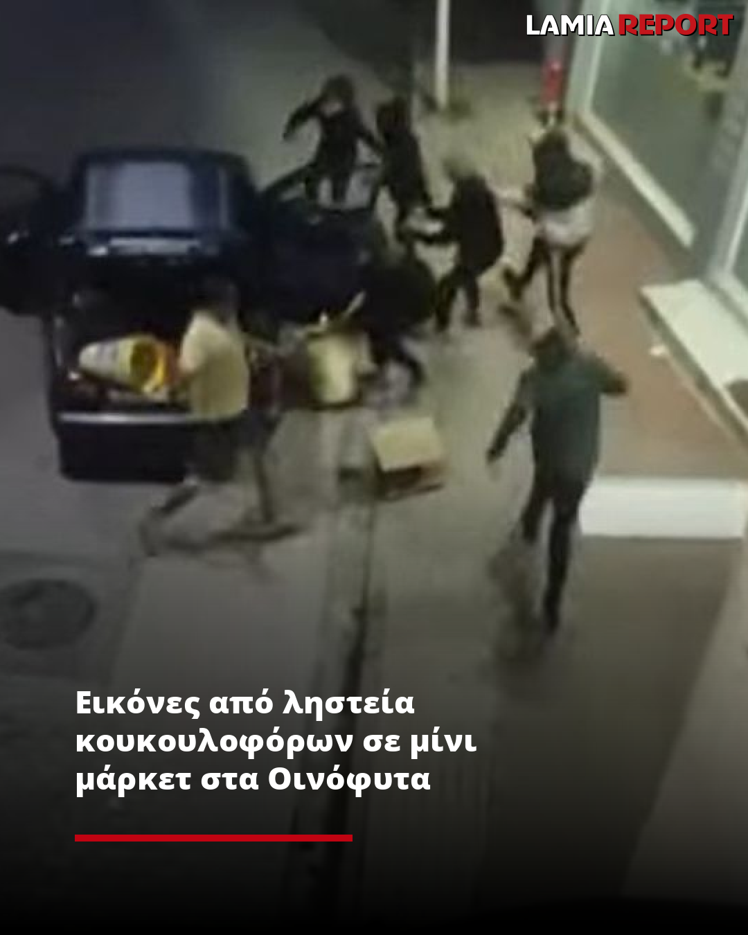 Εικόνες από ληστεία κουκουλοφόρων σε μίνι μάρκετ στα Οινόφυτα
