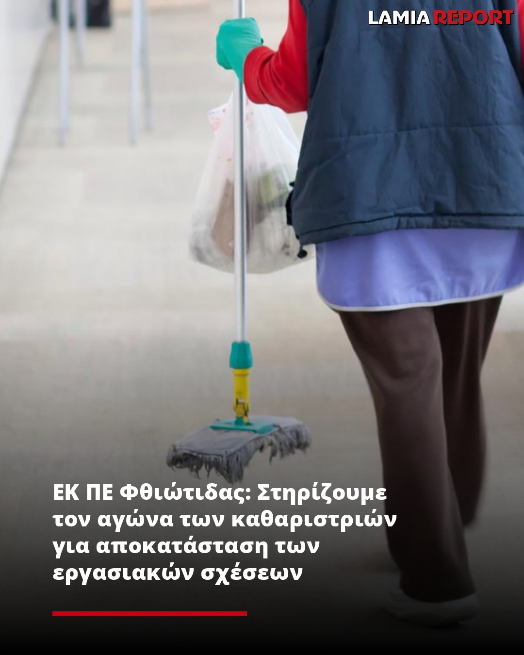ΕΚ ΠΕ Φθιώτιδας: Στηρίζουμε τον αγώνα των καθαριστριών για αποκατάσταση των εργασιακών σχέσεων