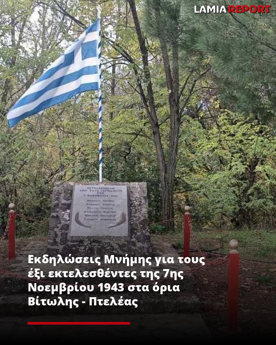Η Τοπική Κοινότητα Βίτωλης και η Τοπική Κοινότητα Πτελέας, σε συνεργασία με πολιτιστικούς και τοπικούς φορείς, διοργανώνουν την Κυριακή, 9 Νοεμβρίου 2025, εκδηλώσεις μνήμης για τους εκτελεσθέντες από τα γερμανικά στρατεύματα κατοχής, στις 7 Νοεμβρίου 1943, στην ανατολική είσοδο της Πτελέας (Κουκιά / Πύργος το 1943).