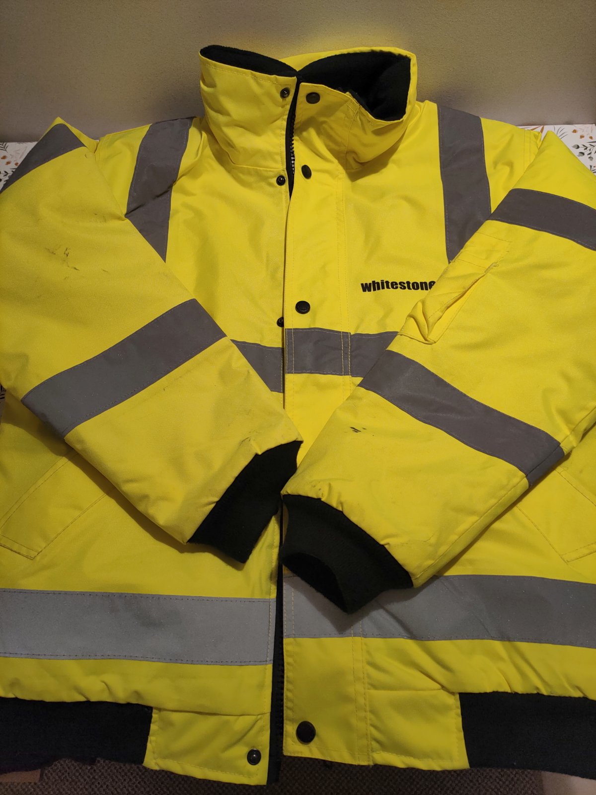 Ρουχισμό ασφαλείας (μπουφάν, παπούτσια εργασίας, κράνη και φωσφοριζέ γιλέκα), παρόμοια με αυτά που εικονίζονται στις φωτογραφίες.