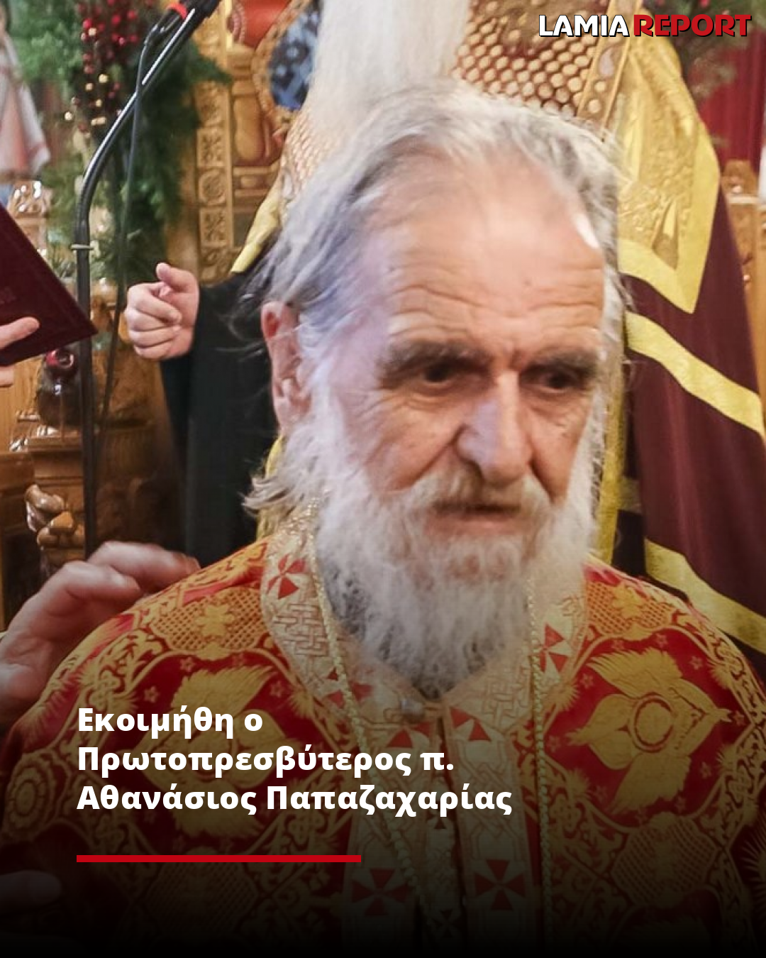 Η Ιερά Μητρόπολις Φθιώτιδος με την κατ’ άνθρωπον λύπη αναγγέλλει την εις Κύριον κοίμηση του μακαριστού Πρωτ. π. Αθανασίου Παπαζαχαρία του ταπεινού λευίτου ιερέως των ορεινών Ενοριών του Δήμου Λαμιέων.