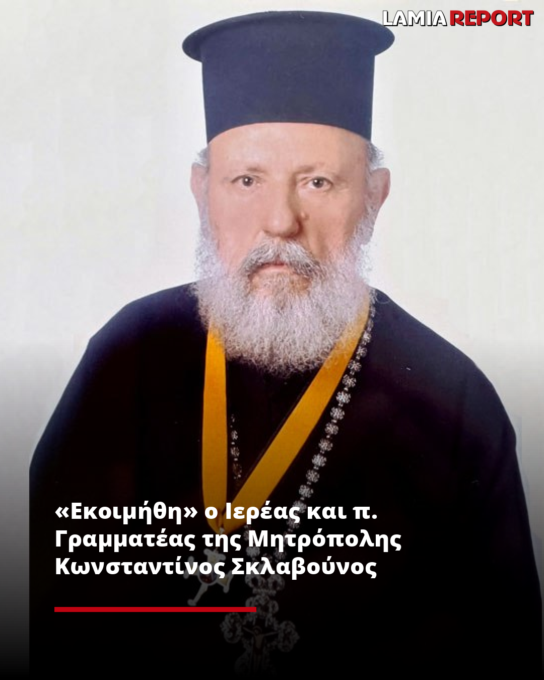 Η Ιερά Μητρόπολη Φθιώτιδος, με την κατά άνθρωπον θλίψη, αναγγέλλει την εκδημία του μακαριστού Πρωτοπρεσβυτέρου, σεβαστού γέροντος, π. Κωνσταντίνου Σκλαβούνου, επί πολλές δεκαετίες υπηρετήσαντος Εφημερίου του Ιερού Μητροπολιτικού Ναού Ευαγγελισμού της Θεοτόκου Λαμίας.