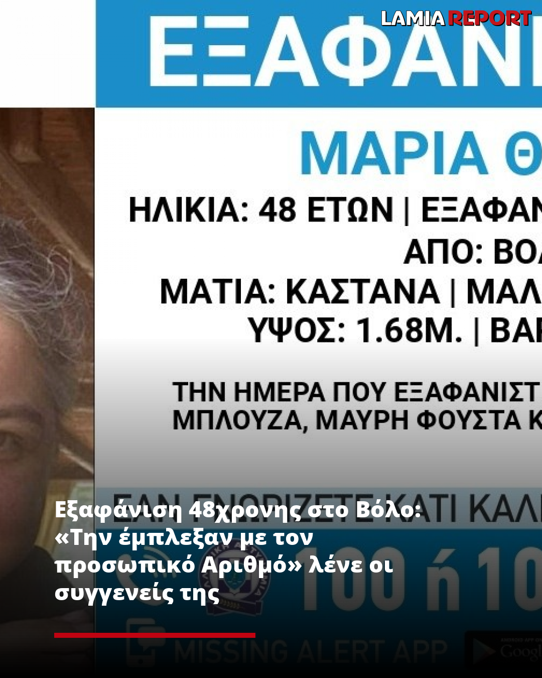 Εξαφάνιση 48χρονης στο Βόλο: «Την έμπλεξαν με τον προσωπικό Αριθμό» λένε οι συγγενείς της