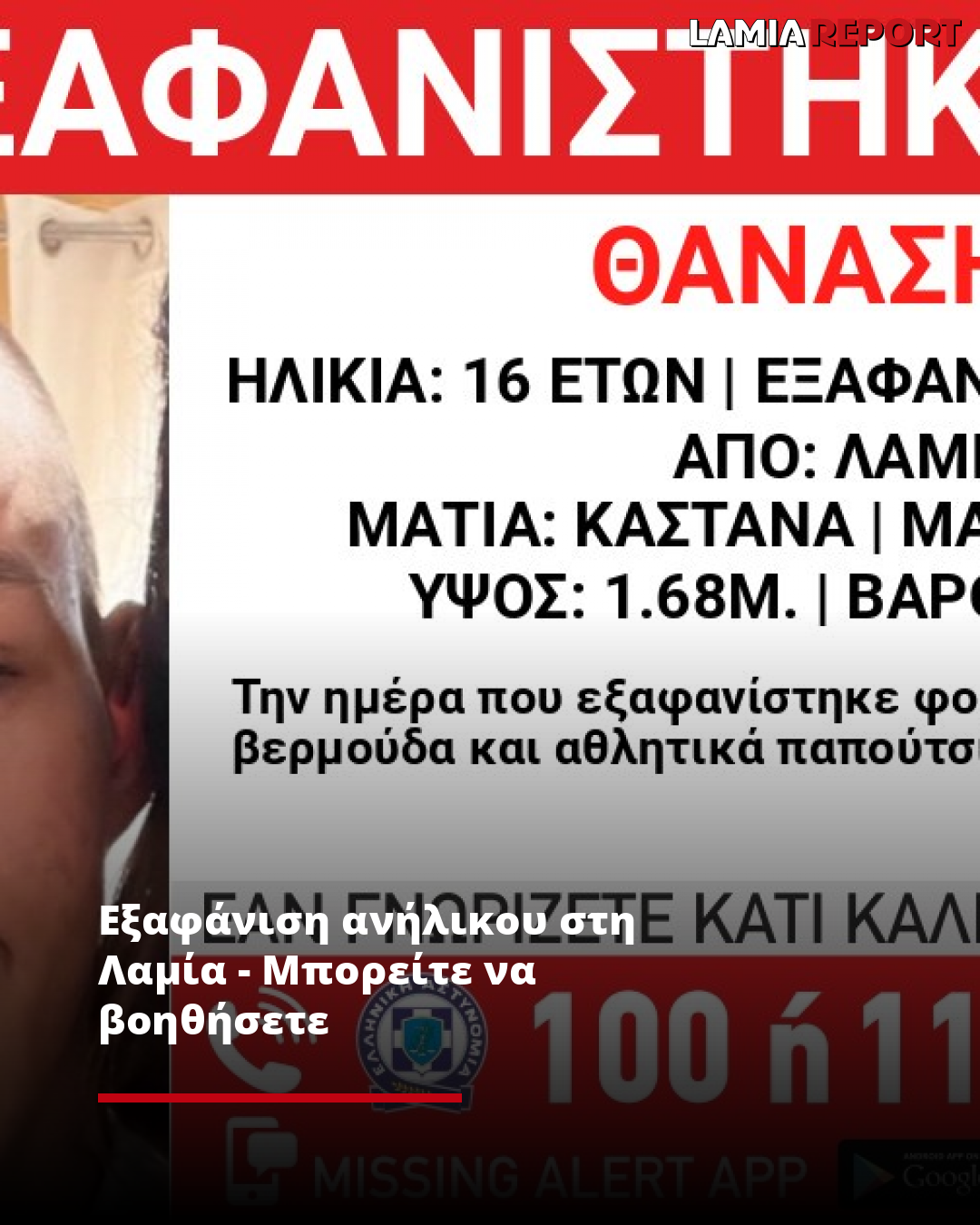 Εξαφάνιση ανήλικου στη Λαμία - Μπορείτε να βοηθήσετε;