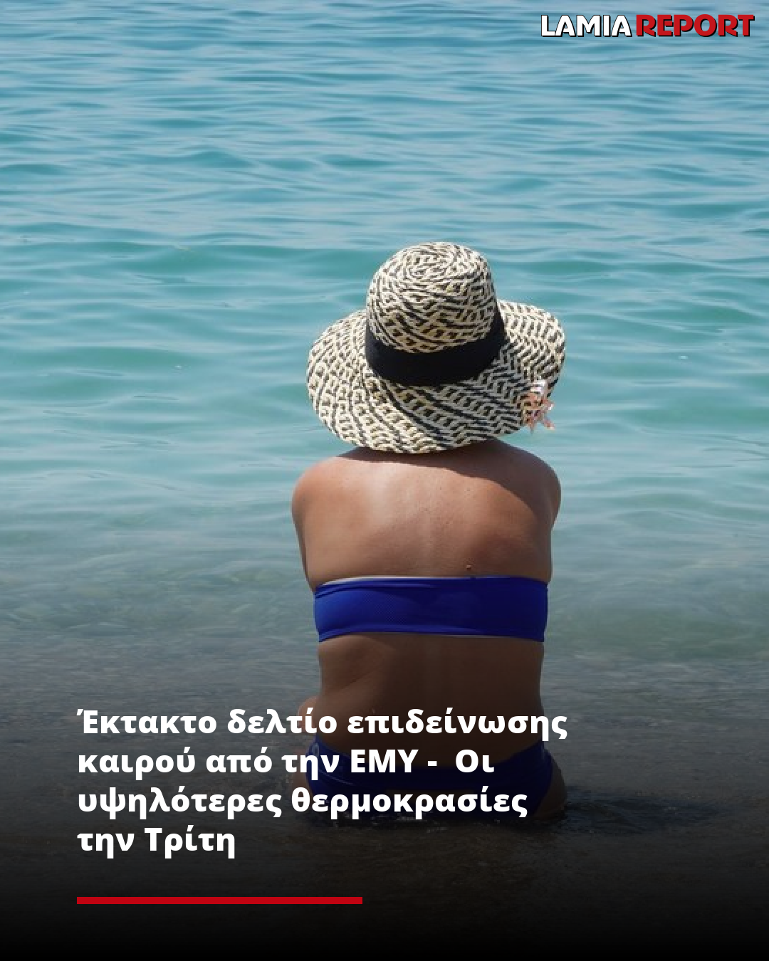 - Την Τρίτη (22-07-25) η θερμοκρασία θα σημειώσει περαιτέρω άνοδο. Οι μέγιστες τιμές θα φτάσουν: α) στην ηπειρωτική Ελλάδα τους 39 με 41, κατά τόπους στην κεντρική Μακεδονία τους 42 και στη Θεσσαλία τους 43 βαθμούς Κελσίου. Στην Αθήνα και στη Θεσσαλονίκη τους 39 με 40 βαθμούς. β) στα νησιά του Ιονίου και τα νησιά του Ανατολικού Αιγαίου τους 37 με 38 και στα Δωδεκάνησα τοπικά τους 39 βαθμούς Κελσίου.