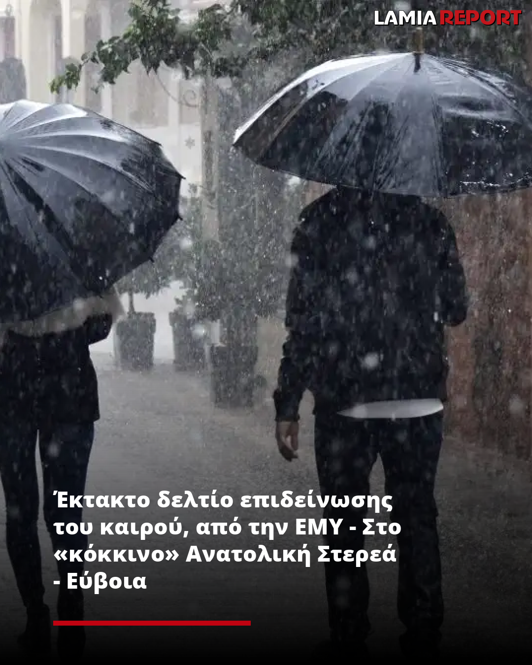 Έκτακτο δελτίο επιδείνωσης του καιρού, από την ΕΜΥ - Στο «κόκκινο» Ανατολική Στερεά - Εύβοια