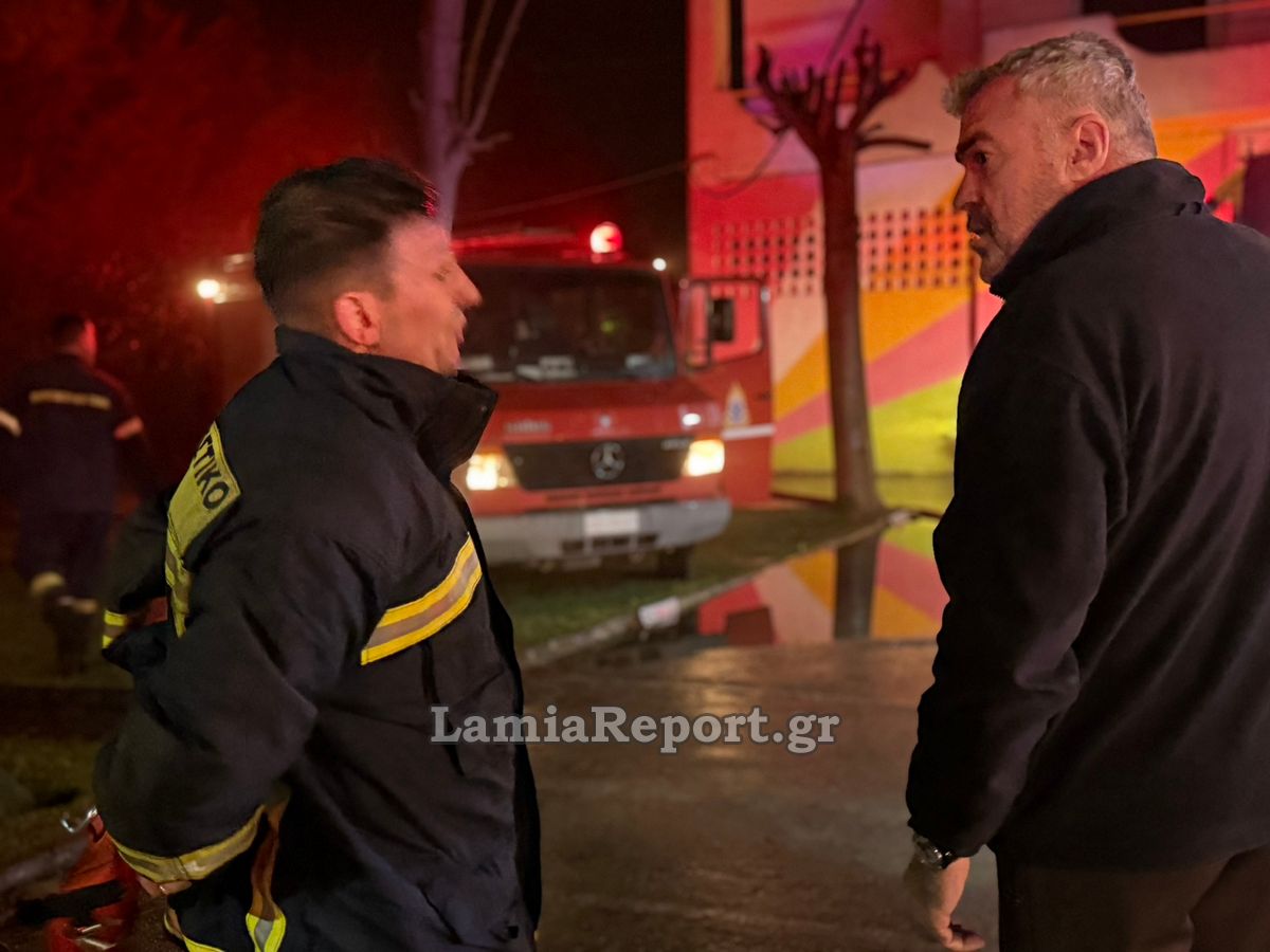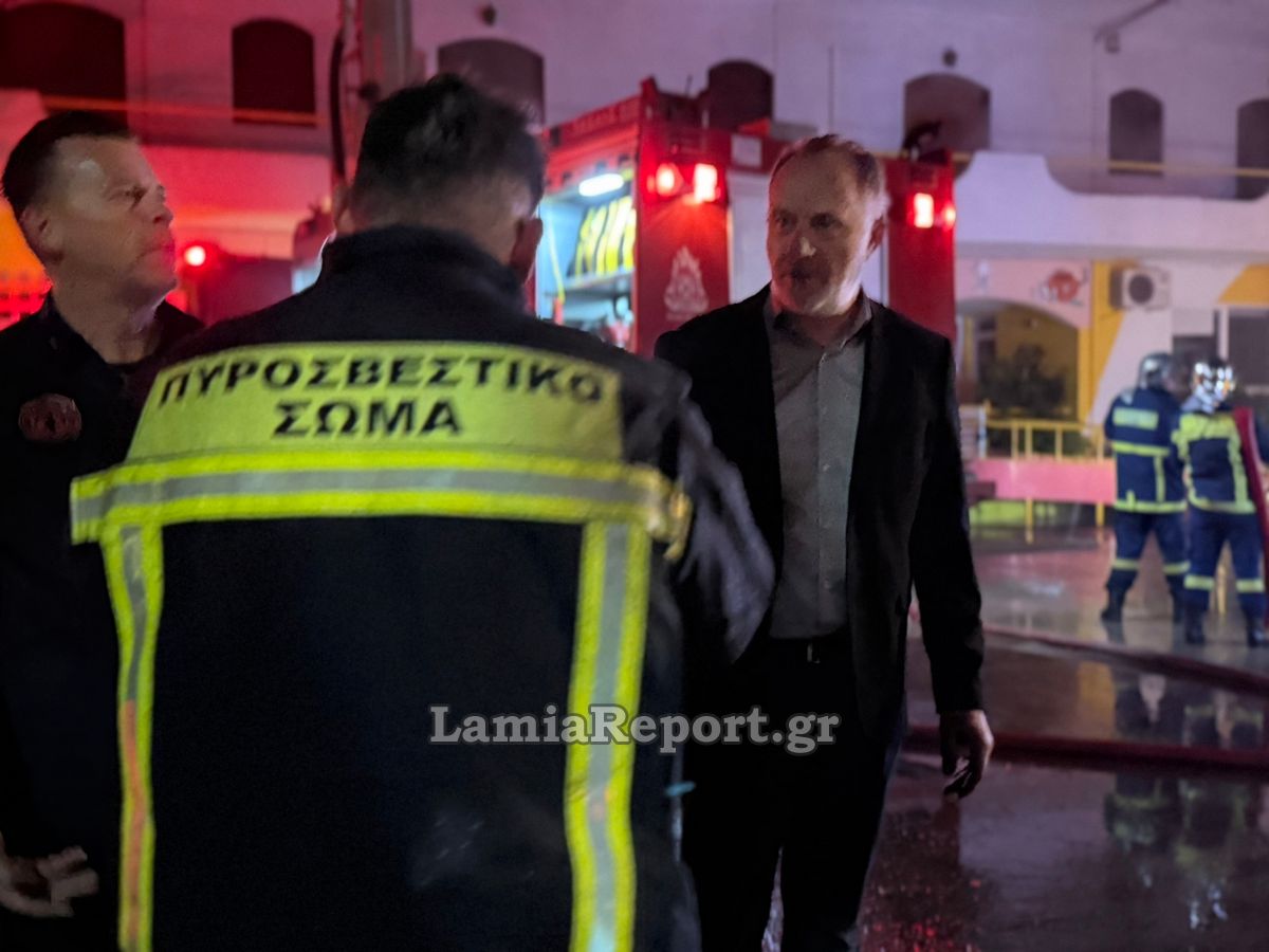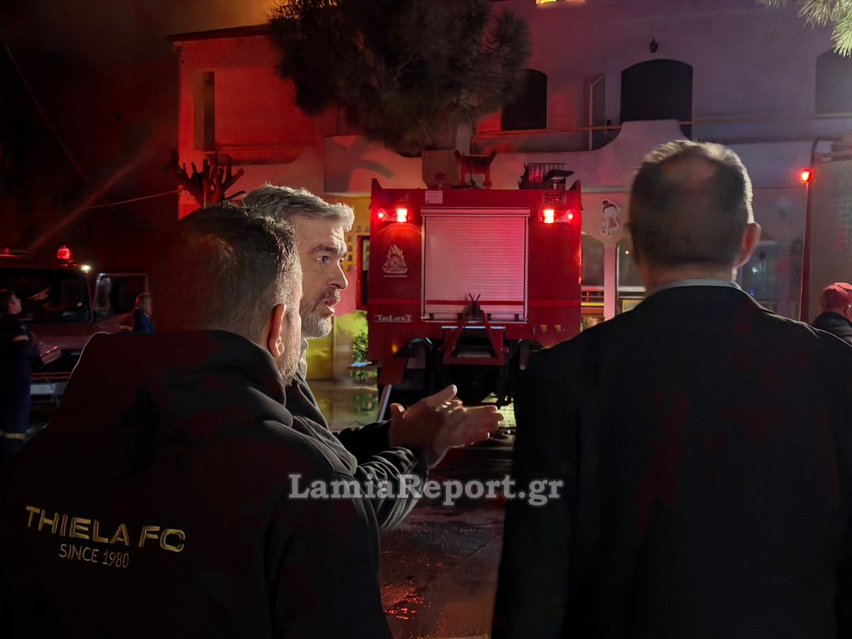 Από τα πρώτα λεπτά έφτασε επίσης στο φλεγόμενο κτίριο και ο Αντιδήμαρχος Πολιτικής Προστασίας Αχιλλέας Τζουβάρας και λίγο μετά έφτασε και ο Δήμαρχος Λαμιέων Πανουργιάς Παπαϊωάννου.