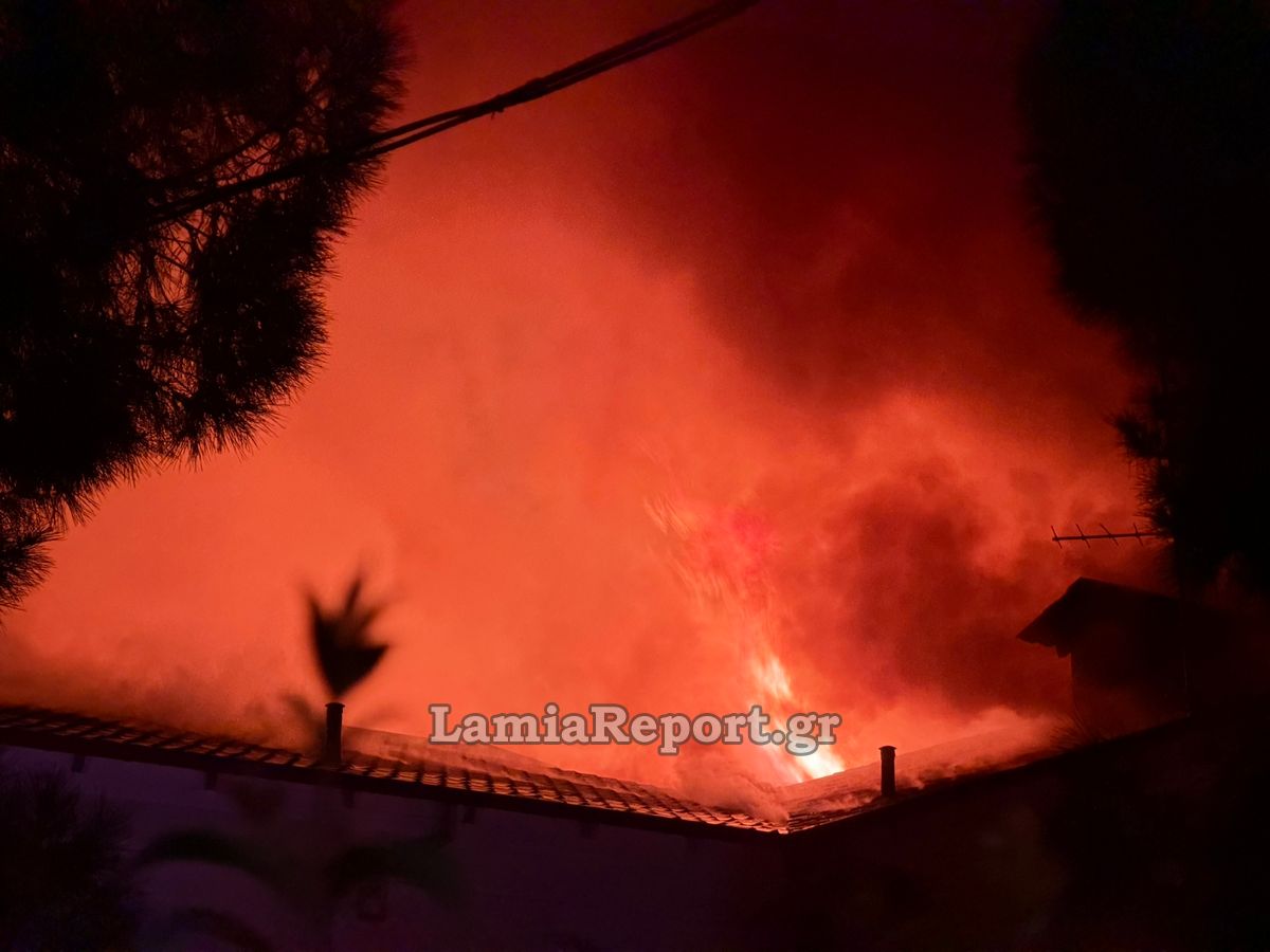 Μέσα σε λίγα λεπτά έγινε παρανάλωμα του πυρός η στέγη με τις πρώτες πληροφορίες να αναφέρουν ότι υπήρχαν αρκετά άτομα στον 1ο όροφο.