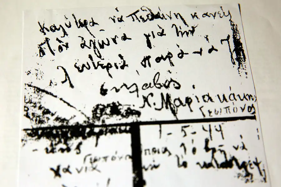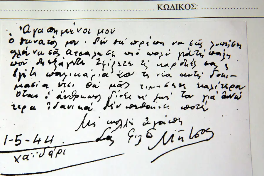 «Δε σας ξέχασα ποτές. Για σας και για τον ελληνικό λαό έδωσα τη ζωή μου. Σήμερα, 1η Μάη 1944, σας φιλώ για τελευταία φορά», έγραφε ένα.