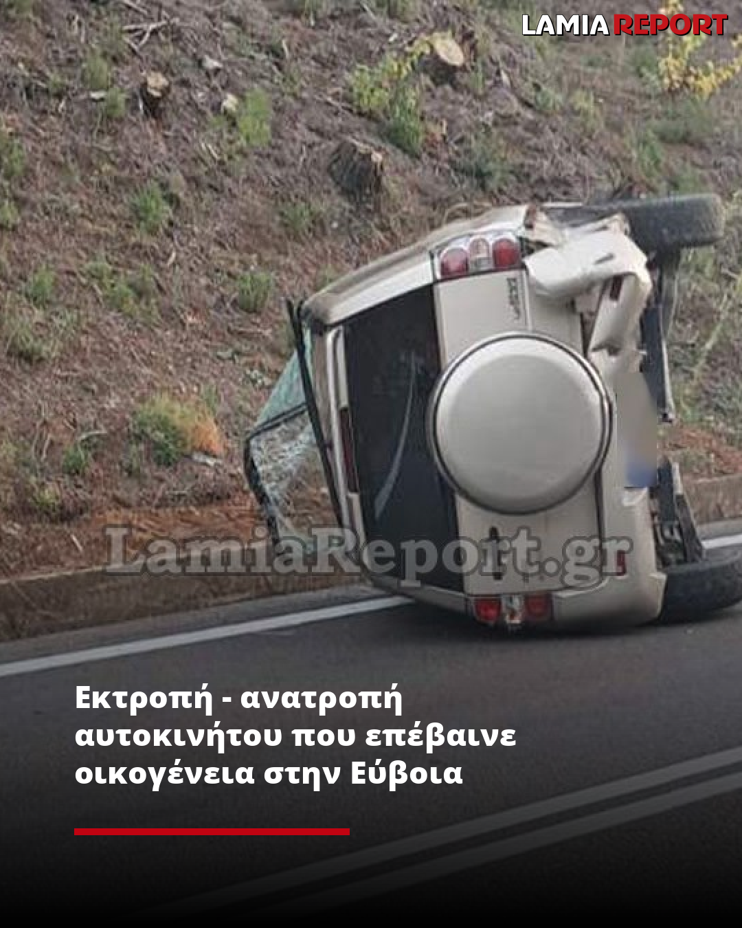 Εκτροπή - ανατροπή αυτοκινήτου που επέβαινε οικογένεια στην Εύβοια