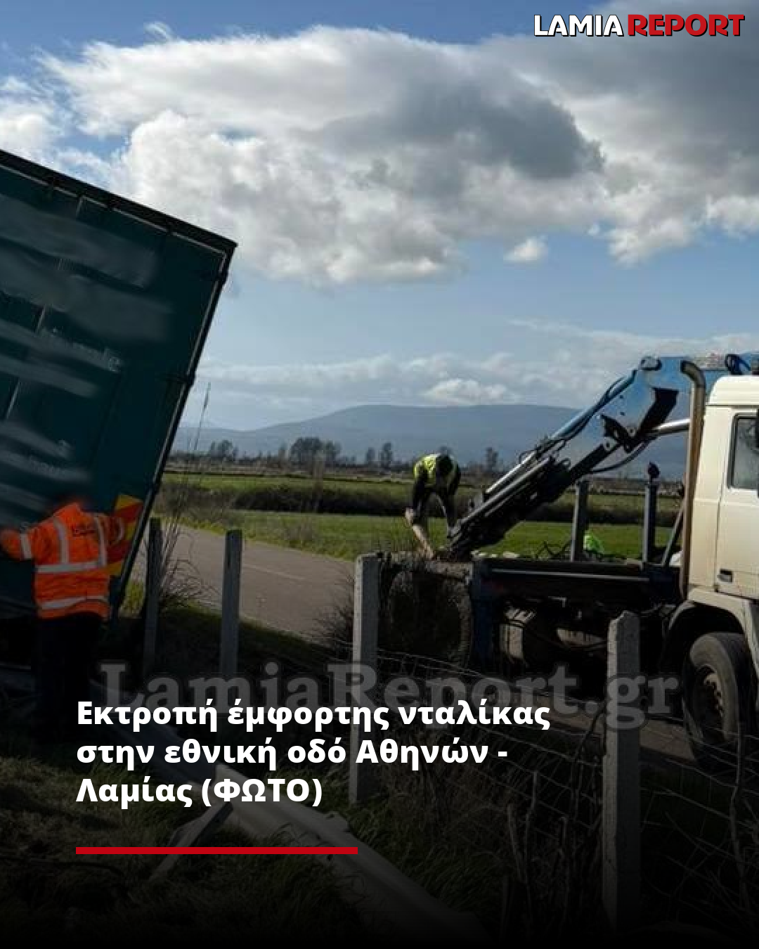 Τροχαίο με εκτροπή νταλίκας φορτωμένης με προϊόντα, σημειώθηκε το πρωί της Παρασκευής (20/2/26) στην εθνική οδό Αθηνών - Λαμίας στο ύψος του Κάστρου Βοιωτίας.