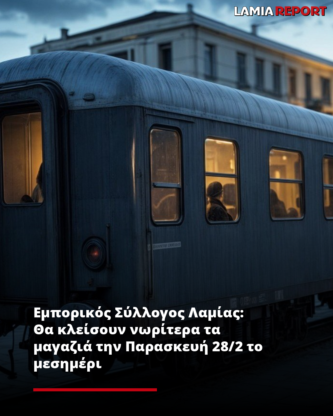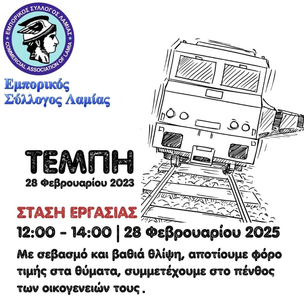 «O Εμπορικός Σύλλογος Λαμίας με σεβασμό και βαθιά θλίψη προς τα θύματα, αποτίει φόρο τιμής, συμμετέχοντας στο πένθος των οικογενειών τους, την Παρασκευή 28 Φεβρουαρίου».