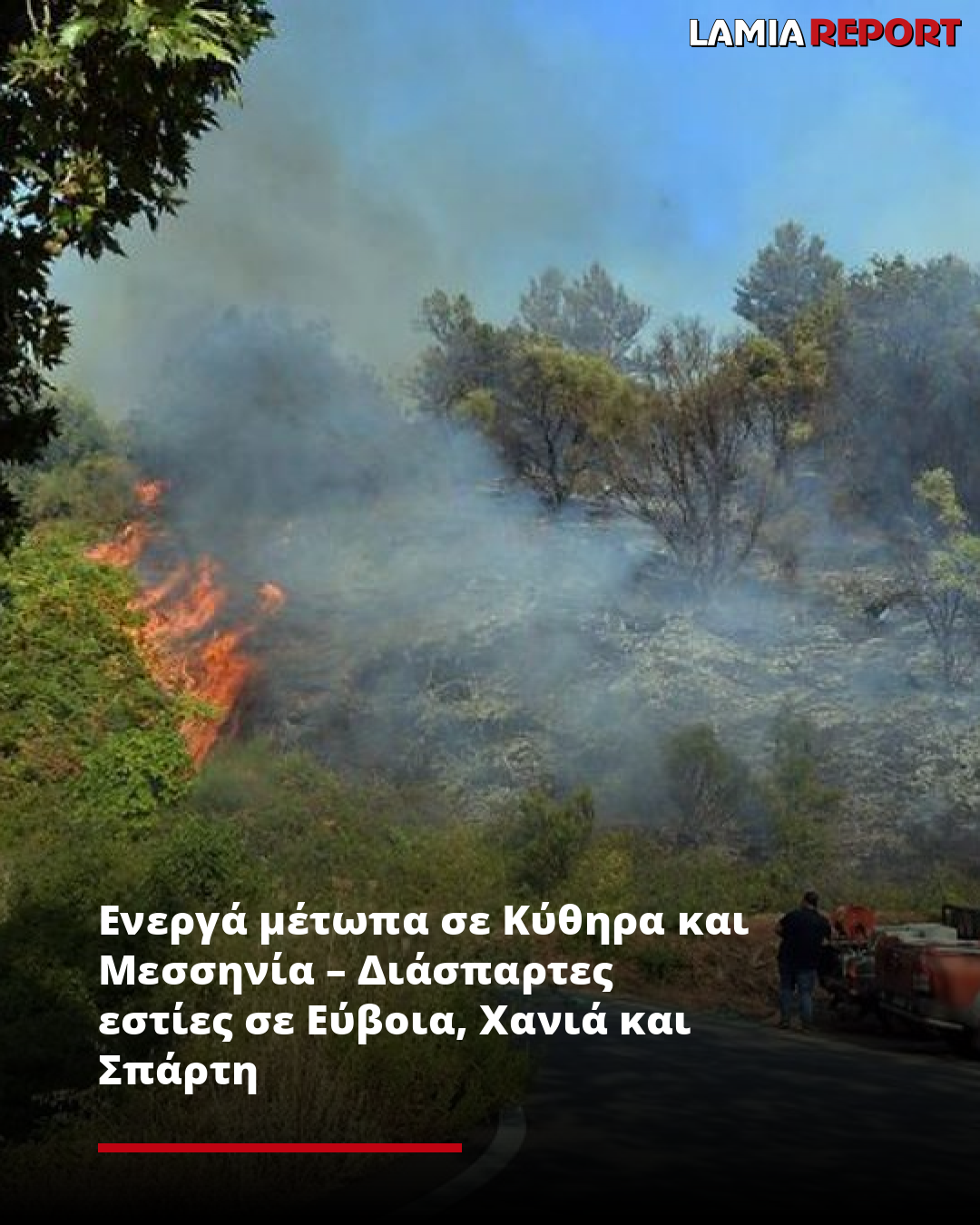 Ενεργά μέτωπα σε Κύθηρα και Μεσσηνία – Διάσπαρτες εστίες σε Εύβοια, Χανιά και Σπάρτη